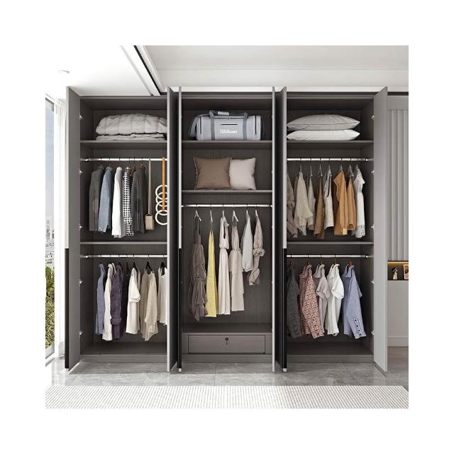 轻奢极简衣柜卧室家用灰色高级感成品衣柜组合挂衣区多平开门衣橱