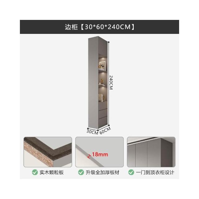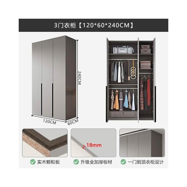 轻奢极简衣柜卧室家用灰色高级感成品衣柜组合挂衣区多平开门衣橱