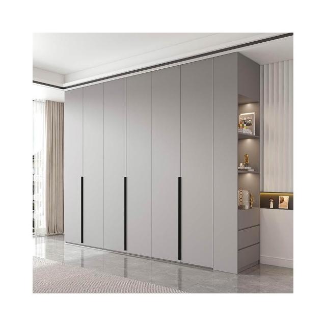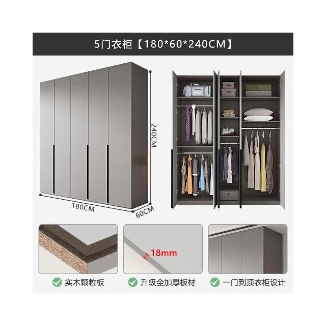 轻奢极简衣柜卧室家用灰色高级感成品衣柜组合挂衣区多平开门衣橱