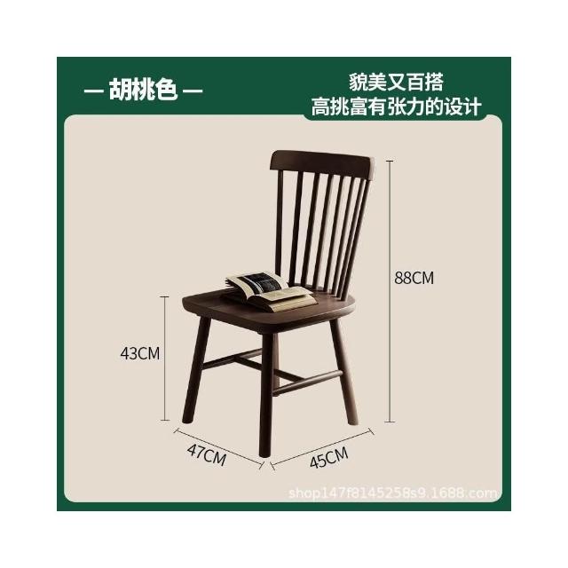 實木餐椅家用中古餐桌椅子商用復古餐廳凳子靠背胡桃木茶桌溫莎椅