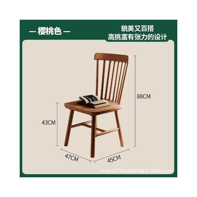 實木餐椅家用中古餐桌椅子商用復古餐廳凳子靠背胡桃木茶桌溫莎椅