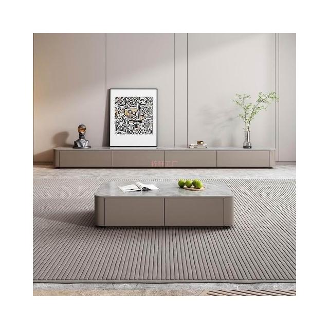 實木岩板落地電視櫃輕奢高級感 簡約客廳家用 落地櫃