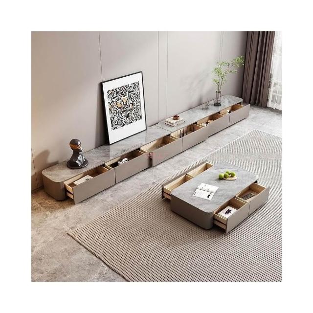 實木岩板落地電視櫃輕奢高級感 簡約客廳家用 落地櫃