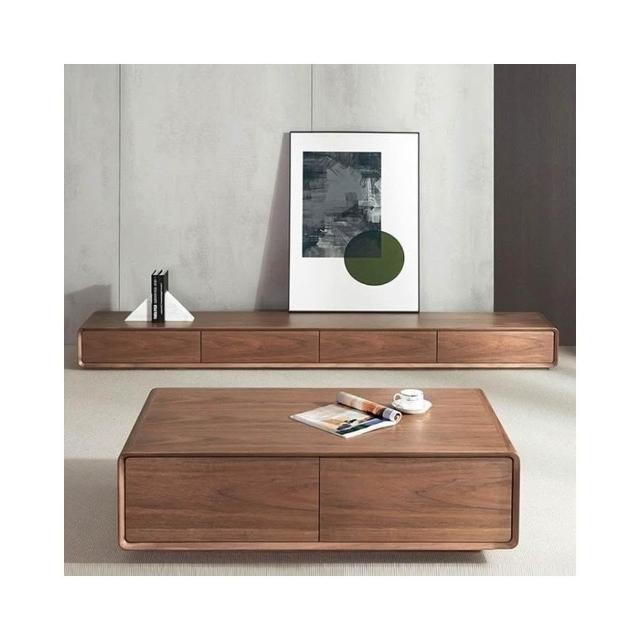 北歐風橡膠木實木落地電視櫃茶几櫃 簡約客廳電櫃組合無需安裝