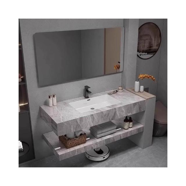 雙層岩板無縫洗手臺盆一體洗臉盆浴室櫃組合衛生間洗手盆工廠直銷