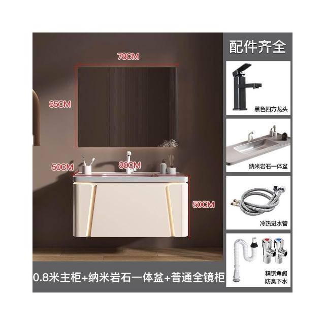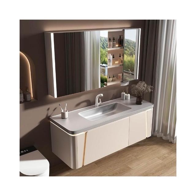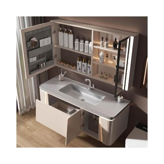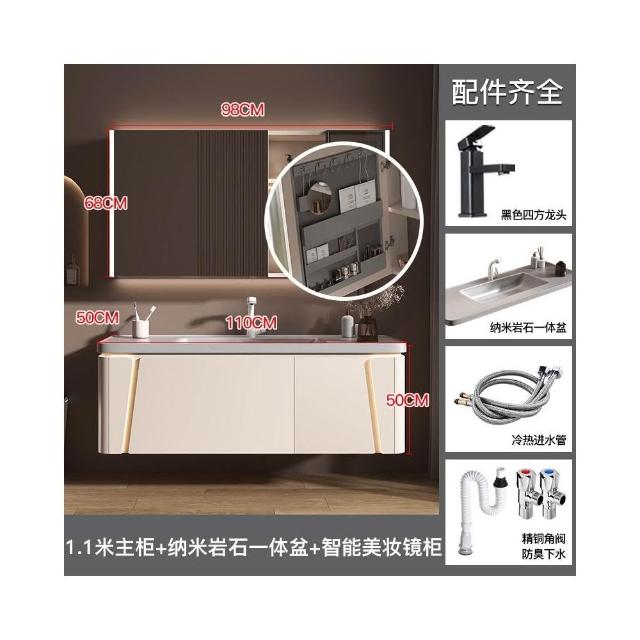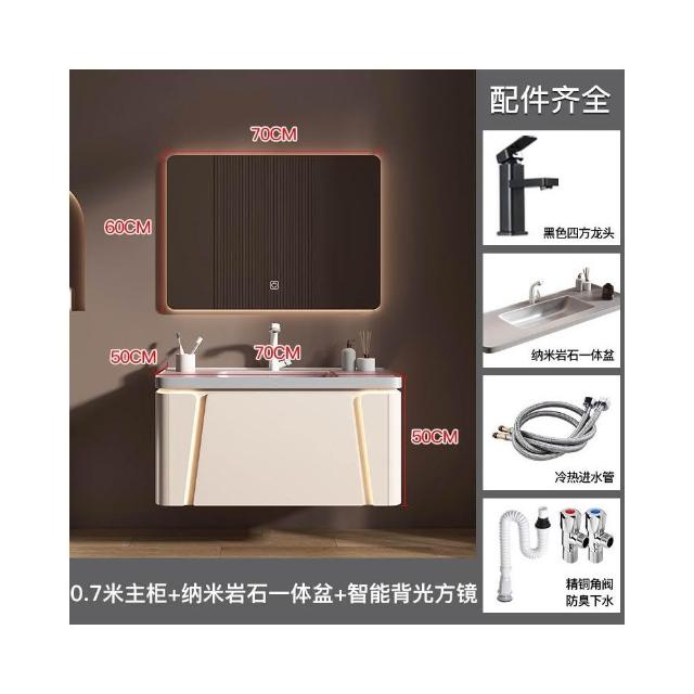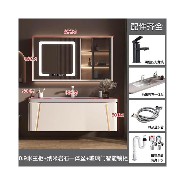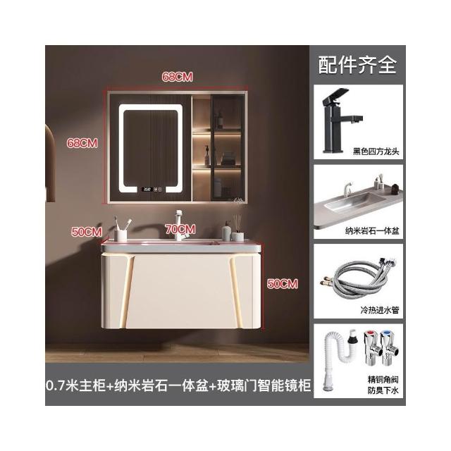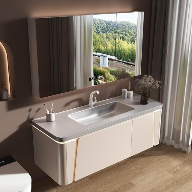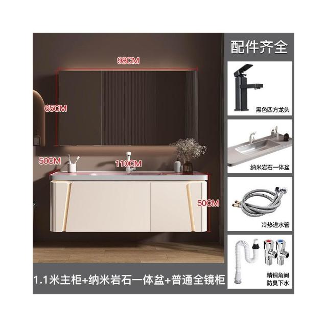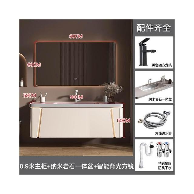 熠達帶燈光圓弧微晶石一體盆衛浴櫃衛生間洗臉盆洗手盆浴室櫃組合
