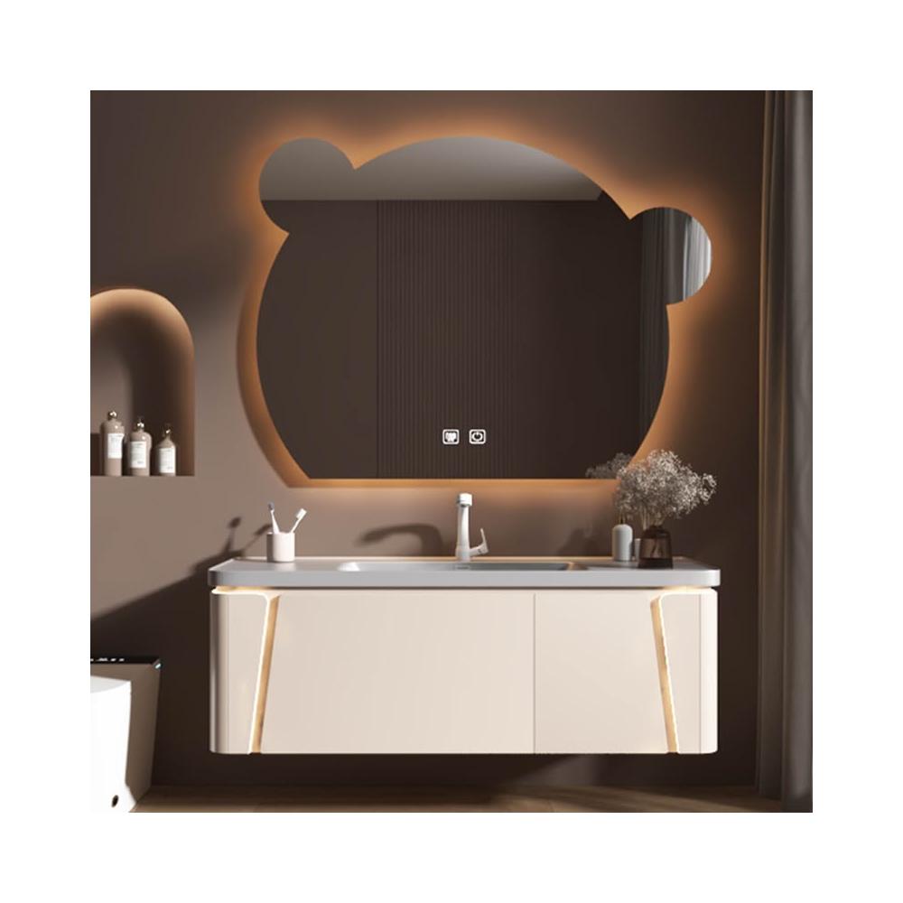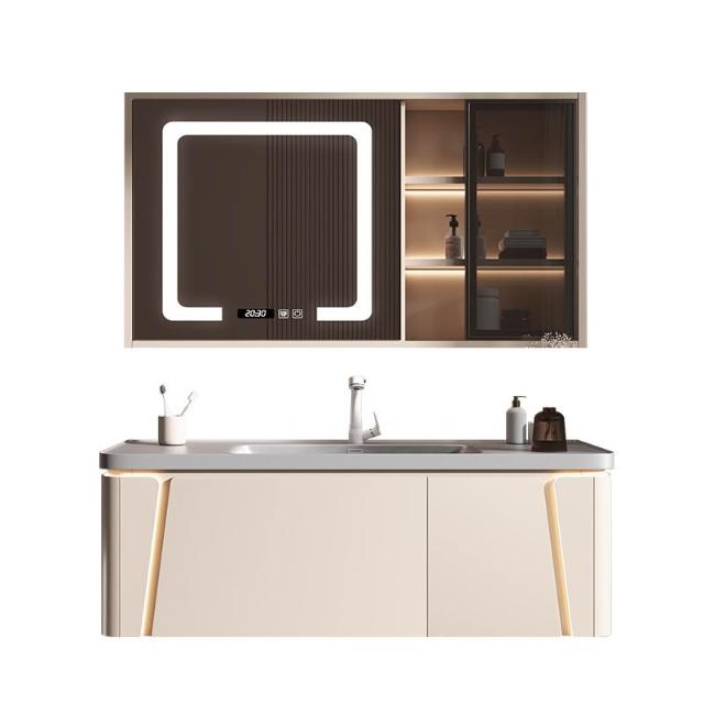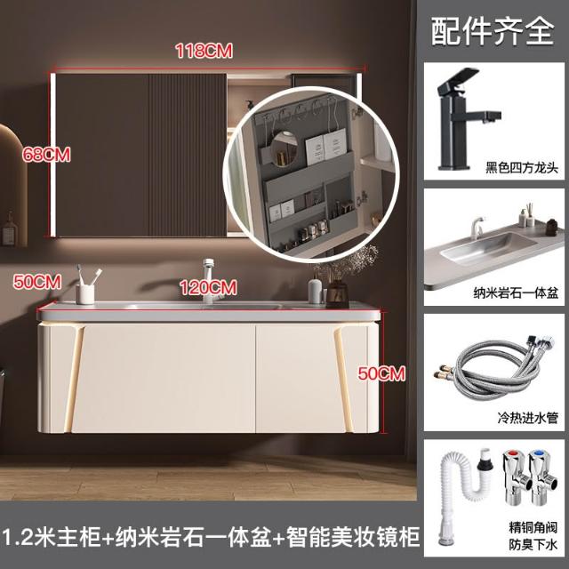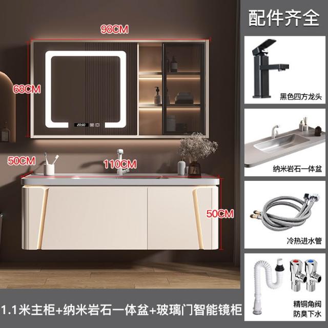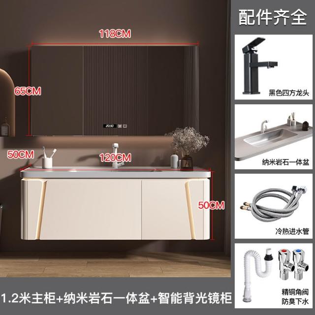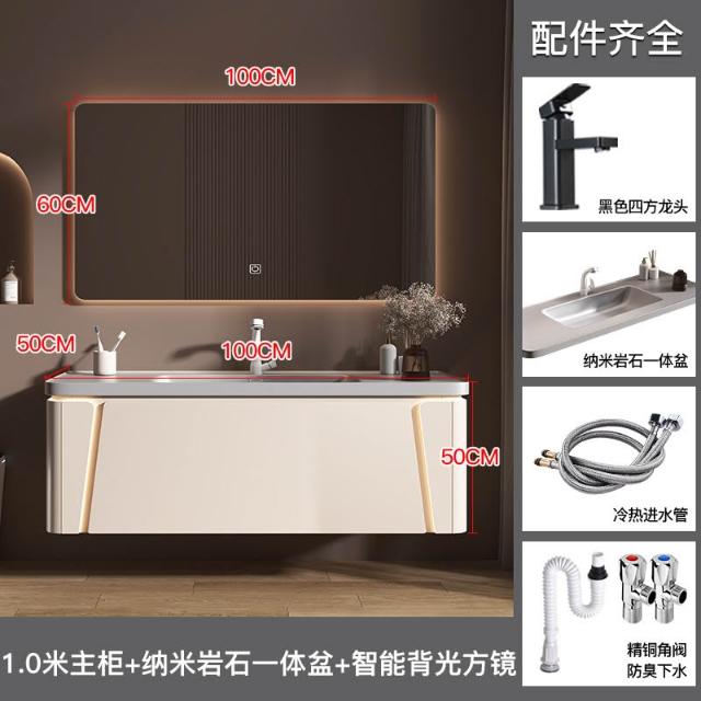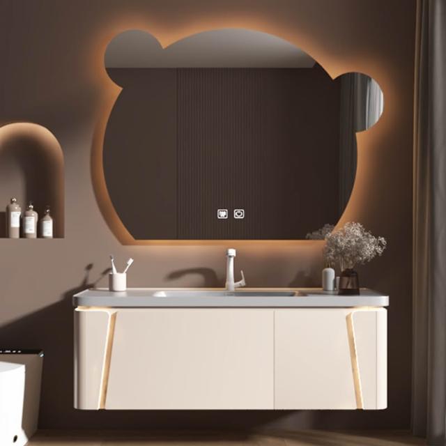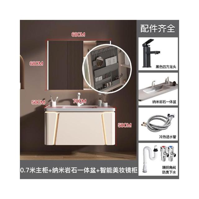 熠達帶燈光圓弧微晶石一體盆衛浴櫃衛生間洗臉盆洗手盆浴室櫃組合