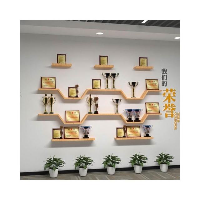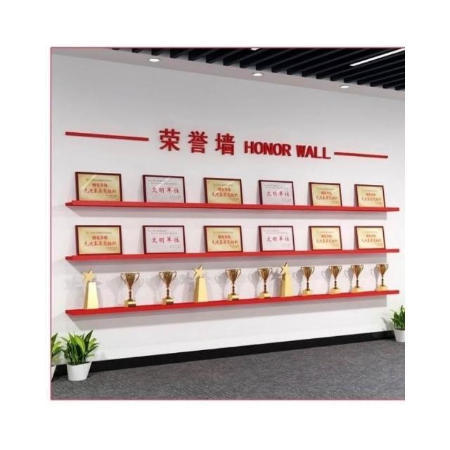 榮譽牆展示架壁掛式獎盃獎牌證書一字隔板置物架帶檔板貨架展示牆