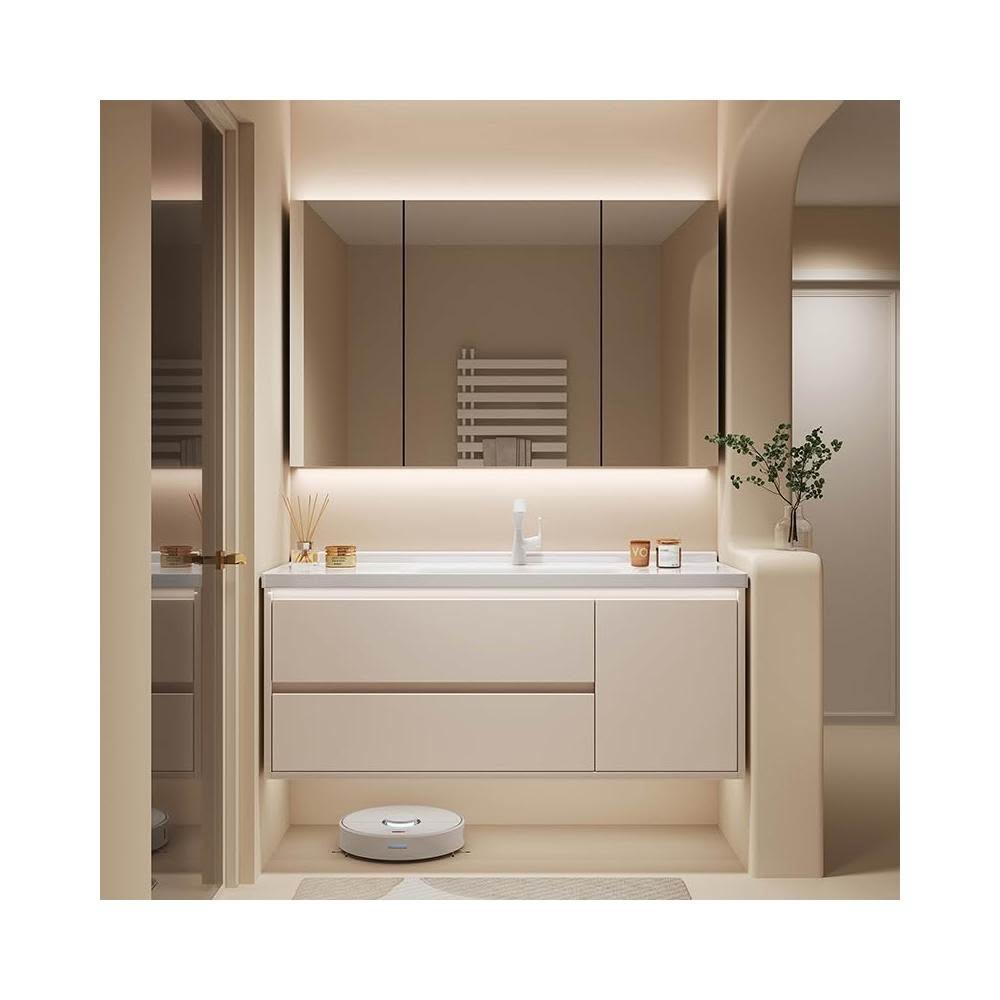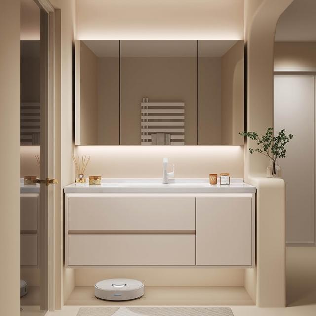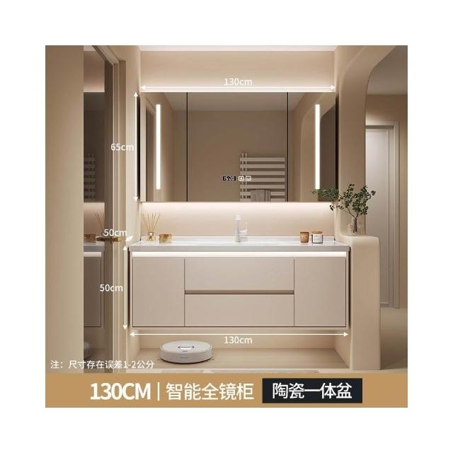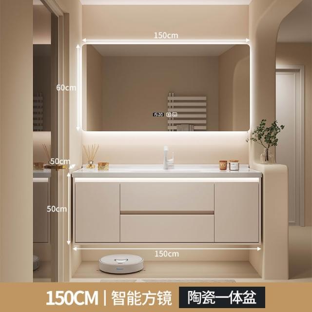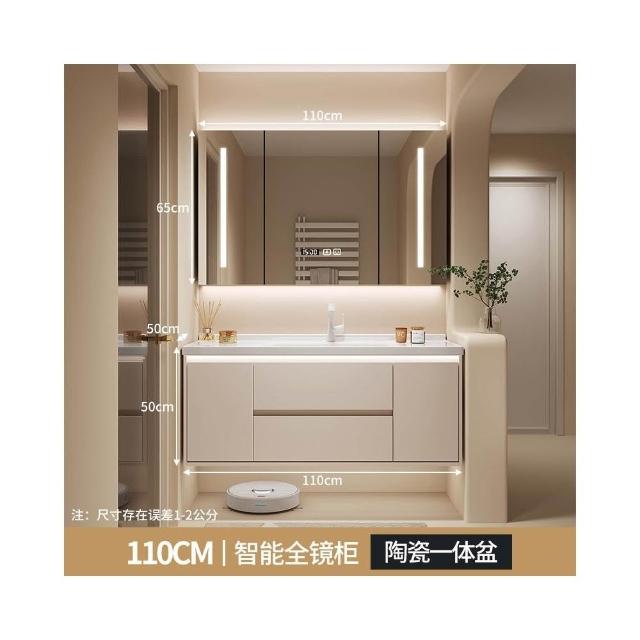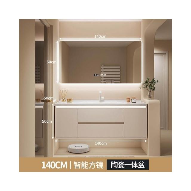 奶油風浴室櫃衛生間洗漱臺洗臉盆櫃組合掛牆式陶瓷一體盆洗手臺櫃