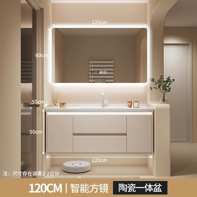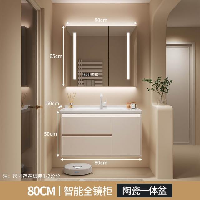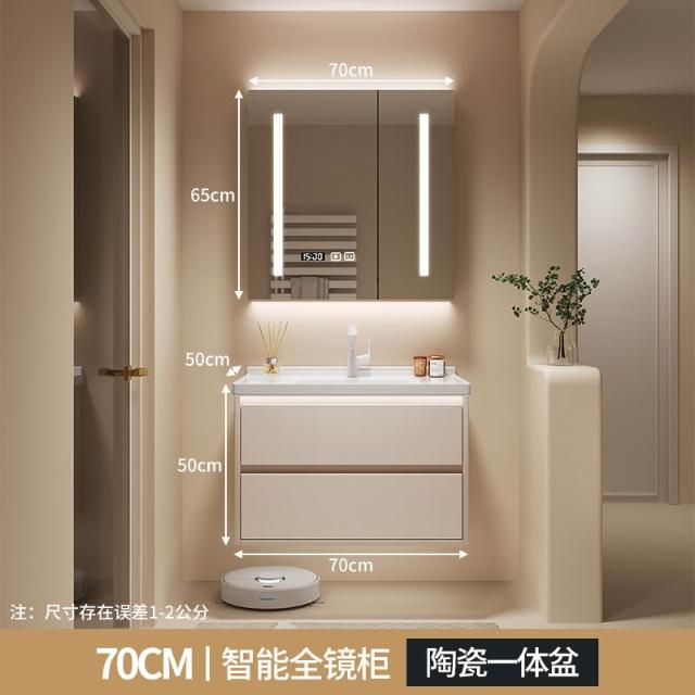 奶油風浴室櫃衛生間洗漱臺洗臉盆櫃組合掛牆式陶瓷一體盆洗手臺櫃