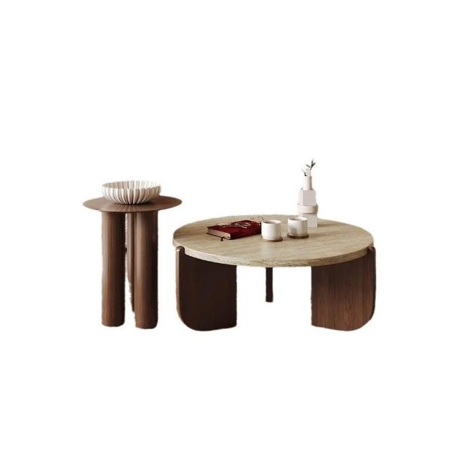 實木天然洞石茶几極簡小戶型客廳家用圓形陽臺創意大理石沙發矮桌