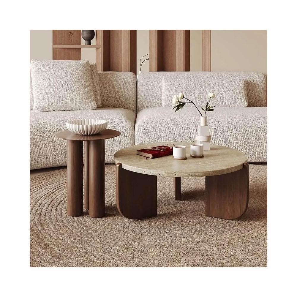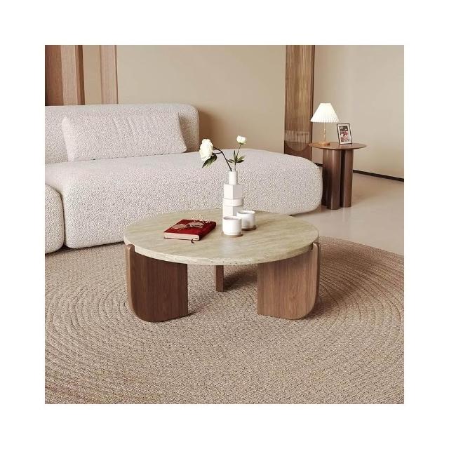 實木天然洞石茶几極簡小戶型客廳家用圓形陽臺創意大理石沙發矮桌