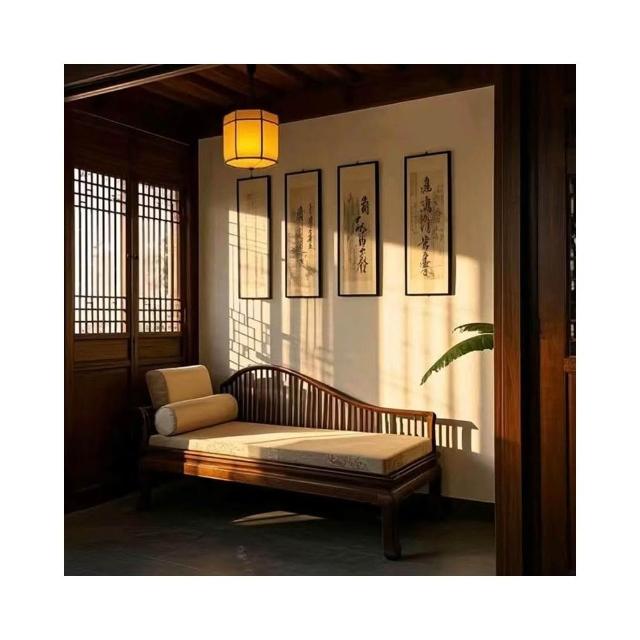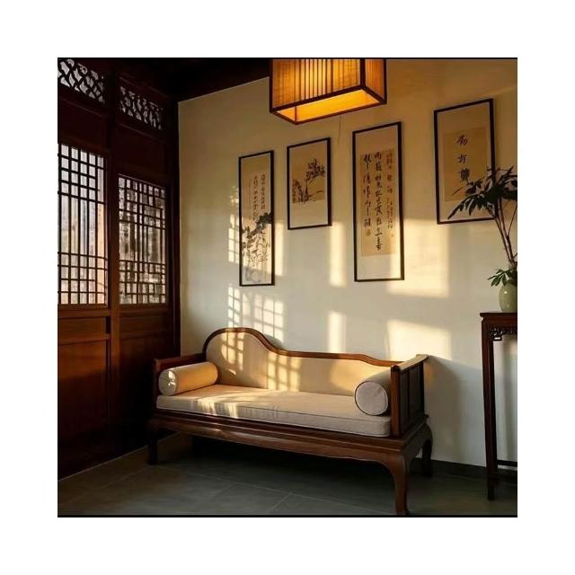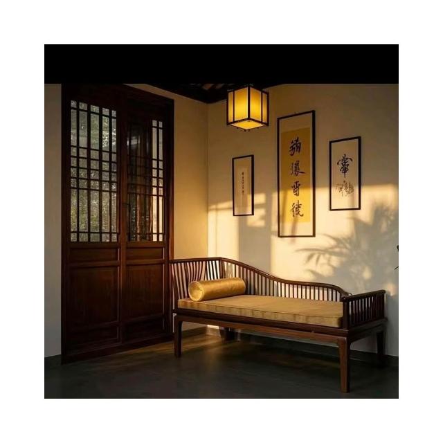 新中式黑胡桃白蠟木貴妃椅慵懶辦公室酒店民宿別墅實木沙發