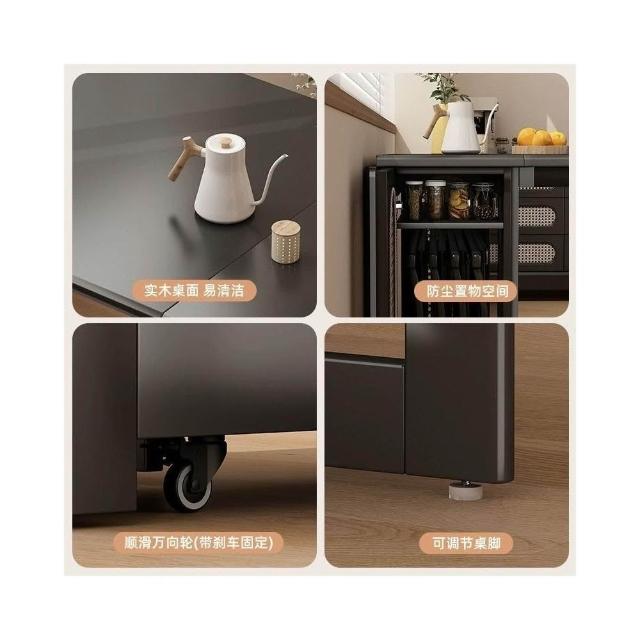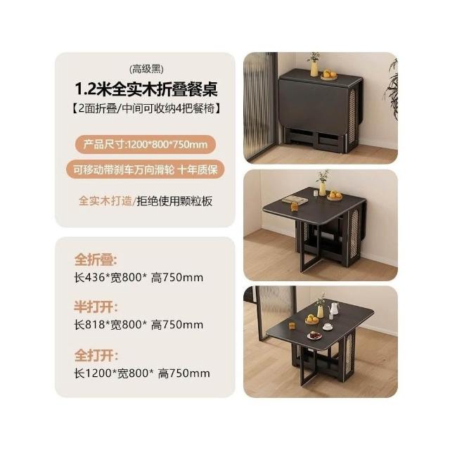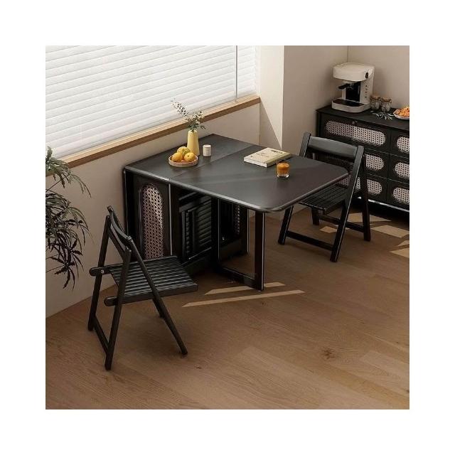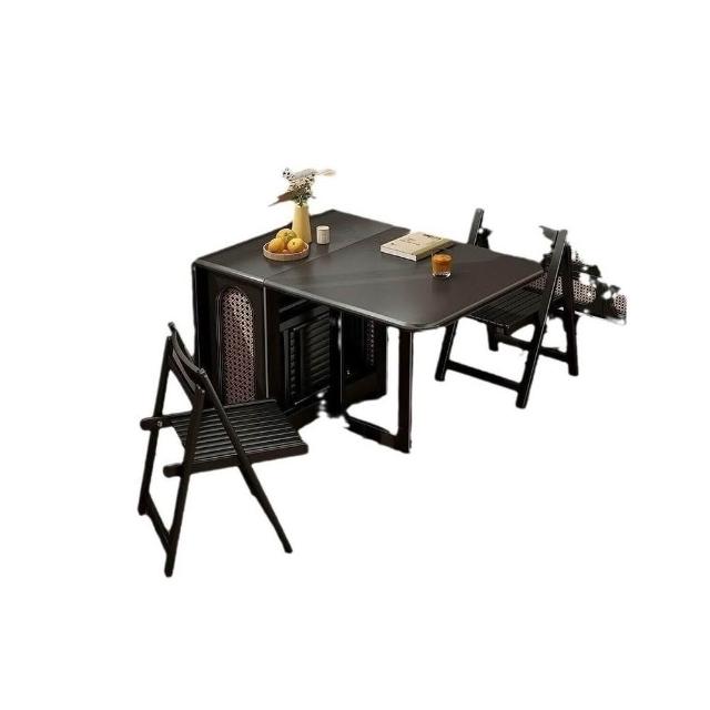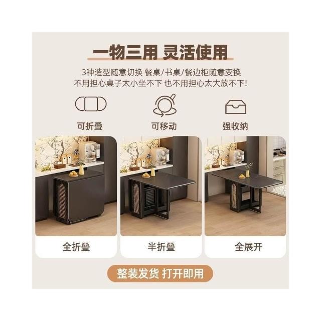 靠牆長方形實木岩板折疊餐桌可伸縮小戶型家用輕奢隱形電磁爐飯桌