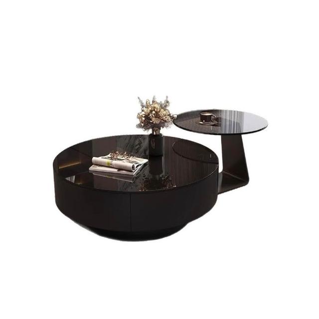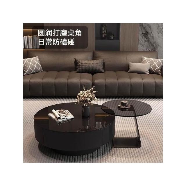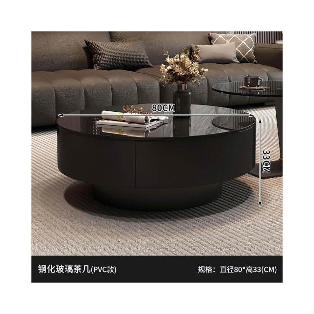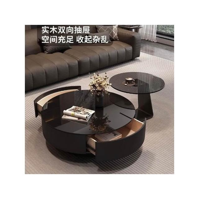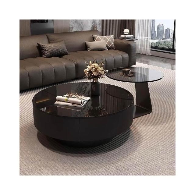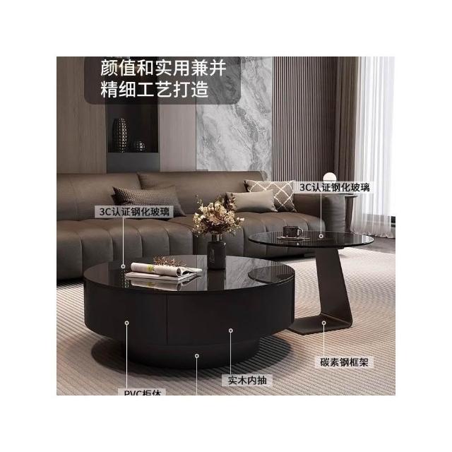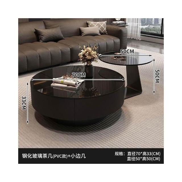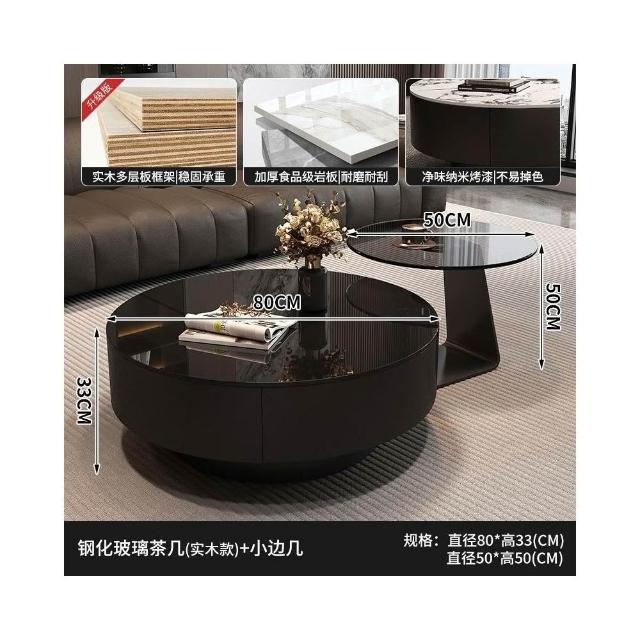 意式極簡客廳家用輕奢風小戶型茶桌感簡約 黑玻璃圓形組合