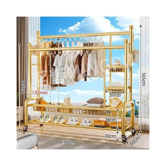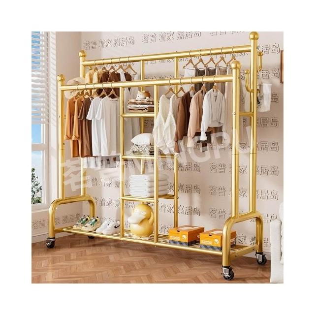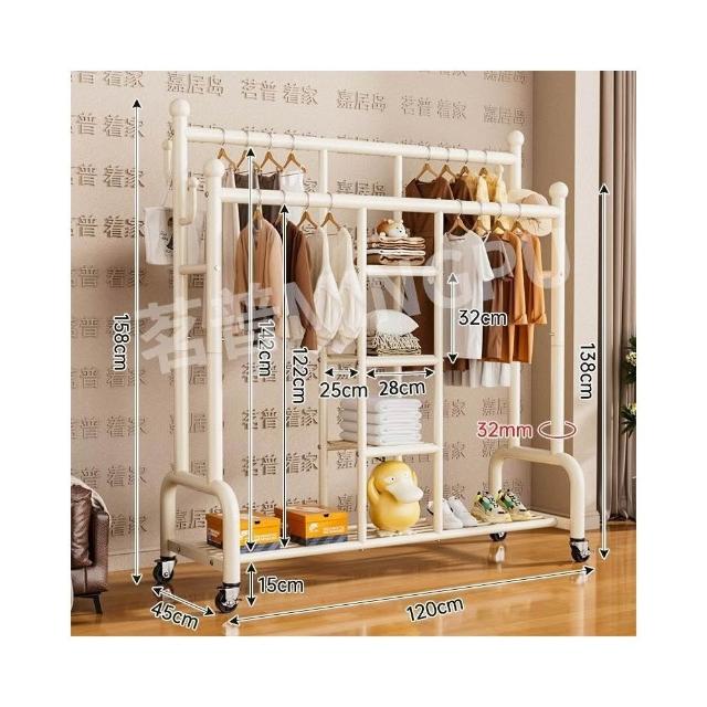 晾衣架落地室内家用衣服架子双杆置物架可移动衣帽架晒衣杆神器