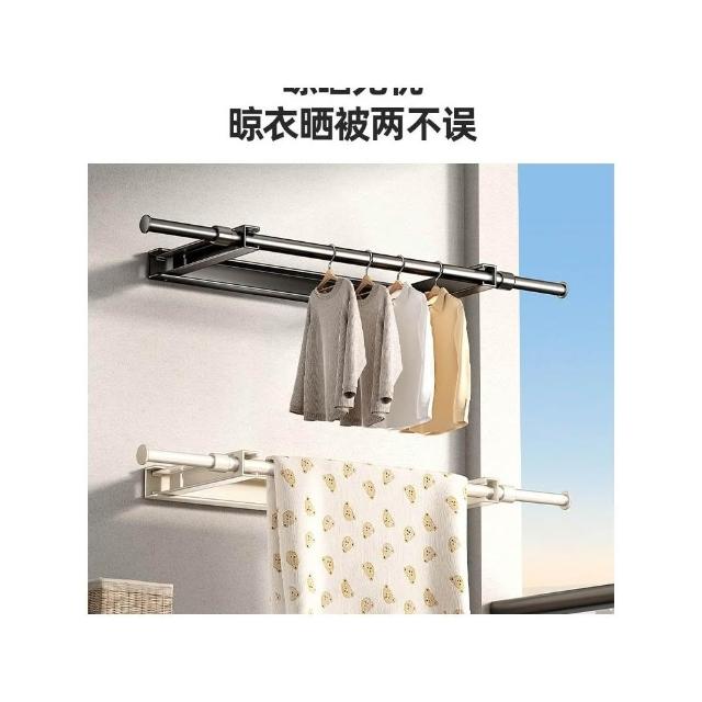 側裝陽臺晾衣杆固定式一整根側面牆上晾衣架子隱形伸縮折疊免打孔