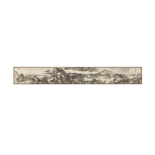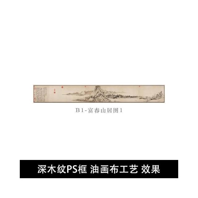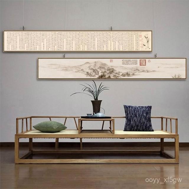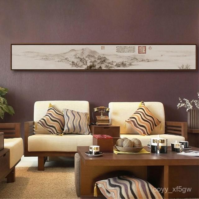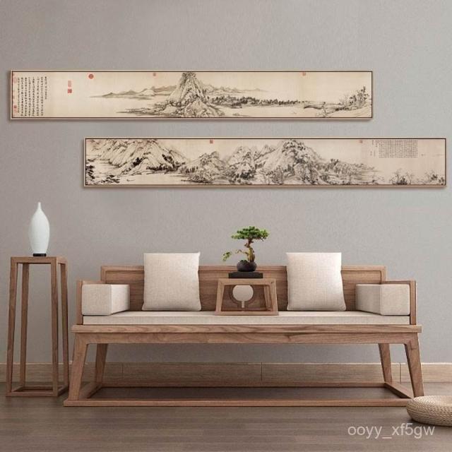 富春山居圖新中式茶室掛畵客廳裝飾畵背景墻水墨畵窄長條橫幅國畵 IGA9