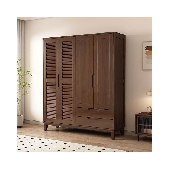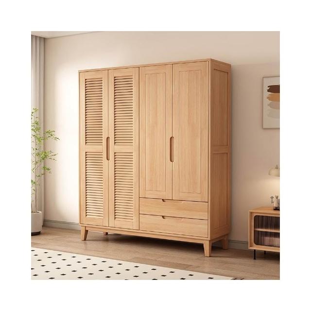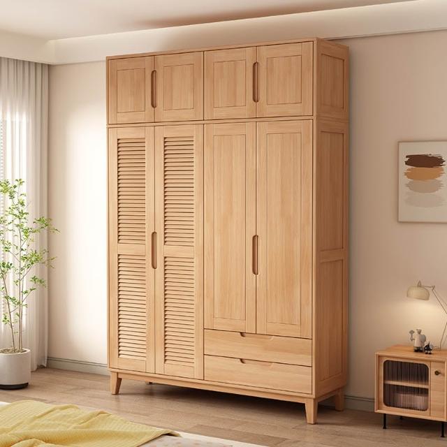 實木櫥櫃百頁格柵衣櫃家用臥室儲物櫃現代簡約床邊帶頂櫃衣架衣櫥 DNFZ