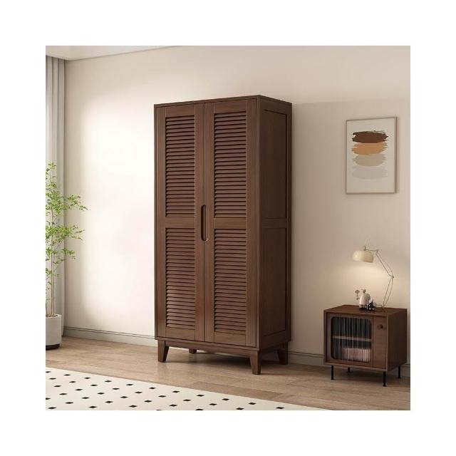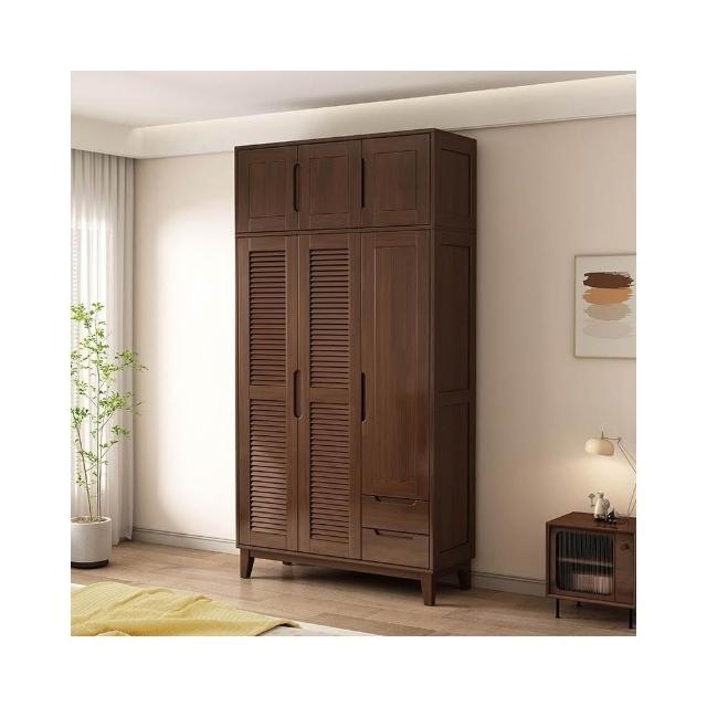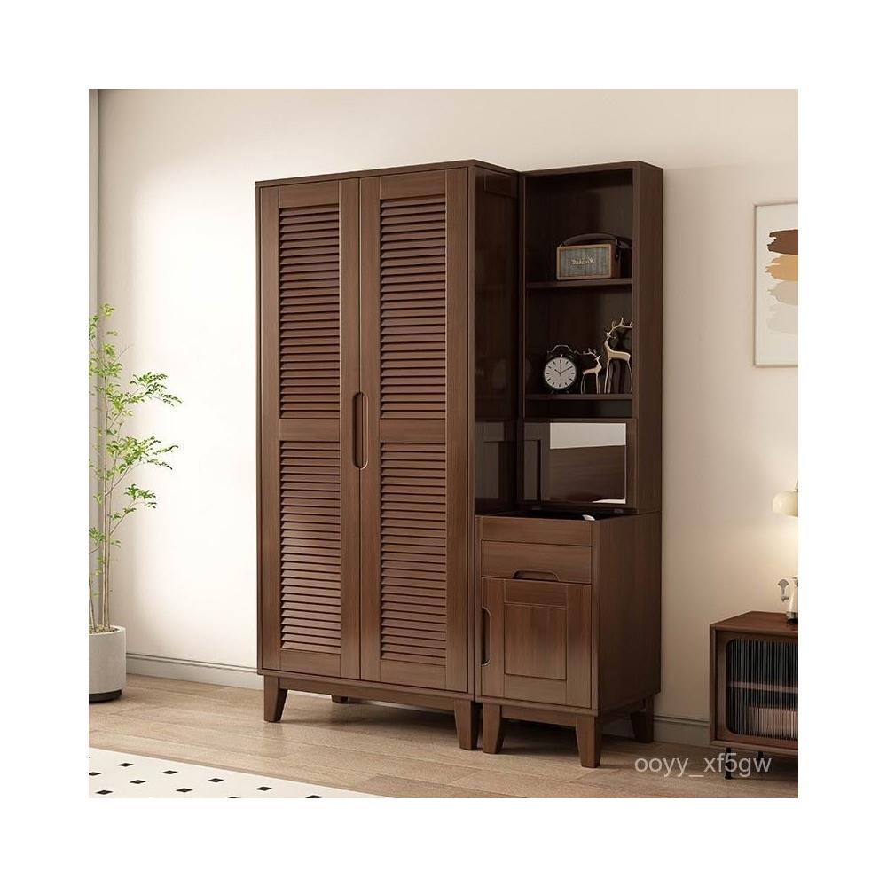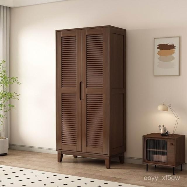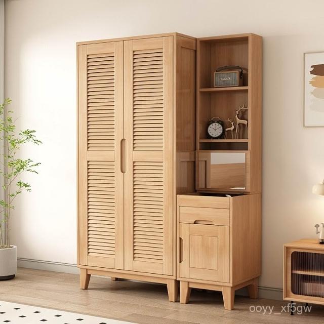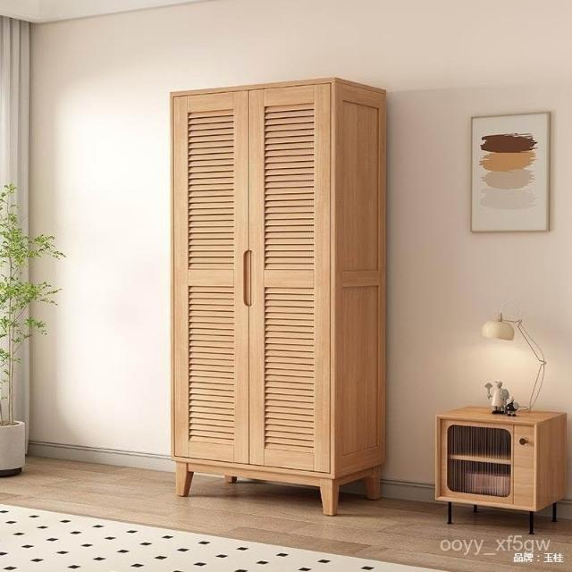 實木櫥櫃百頁格柵衣櫃家用臥室儲物櫃現代簡約床邊帶頂櫃衣架衣櫥 DNFZ