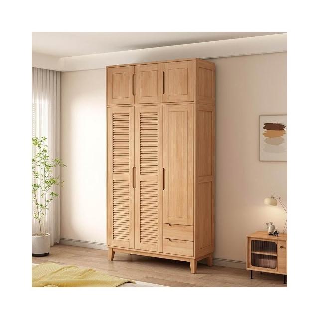 實木櫥櫃百頁格柵衣櫃家用臥室儲物櫃現代簡約床邊帶頂櫃衣架衣櫥 DNFZ