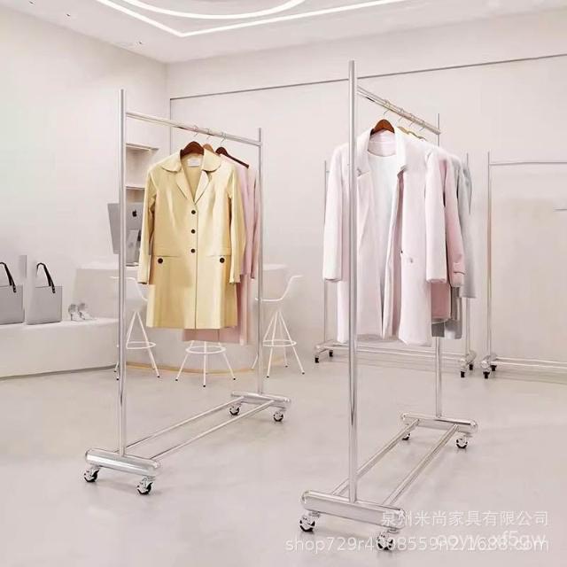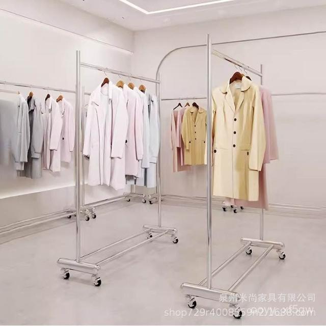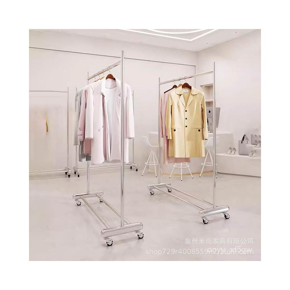 不銹鋼落地陳列架輕奢女裝中島掛衣架單桿貨架帶輪子服裝店展示架 ERRI