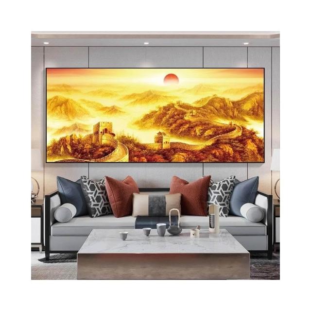 旭日東昇聚寶盆山水畫辦公室字畫裝飾風景山水客廳國畫掛畫沙發背景中堂墻畫zaqw
