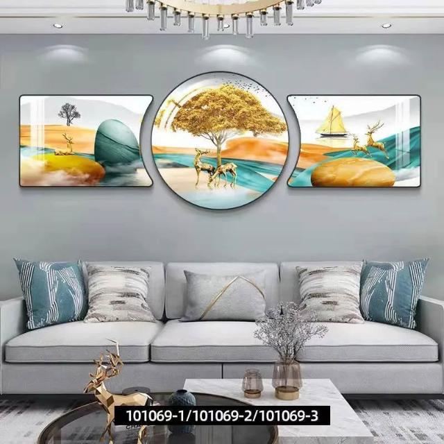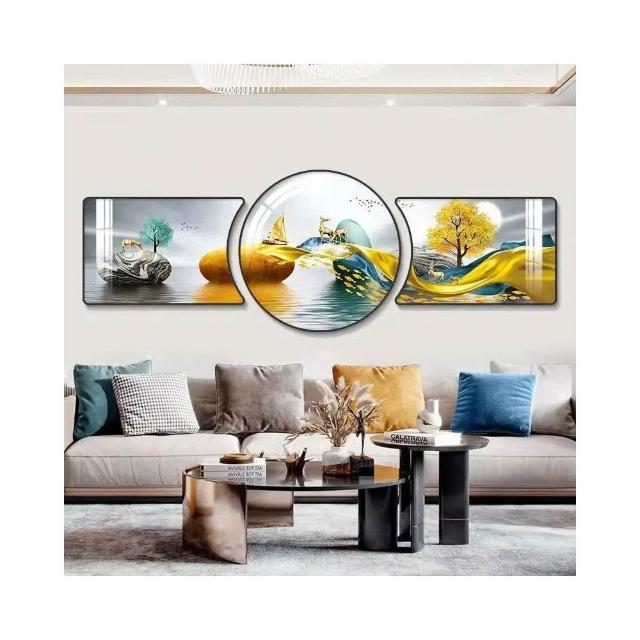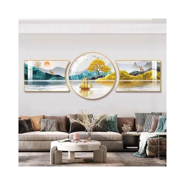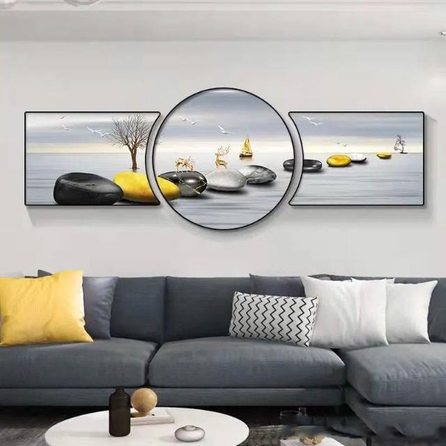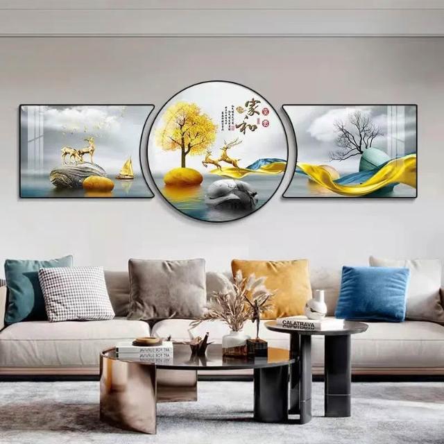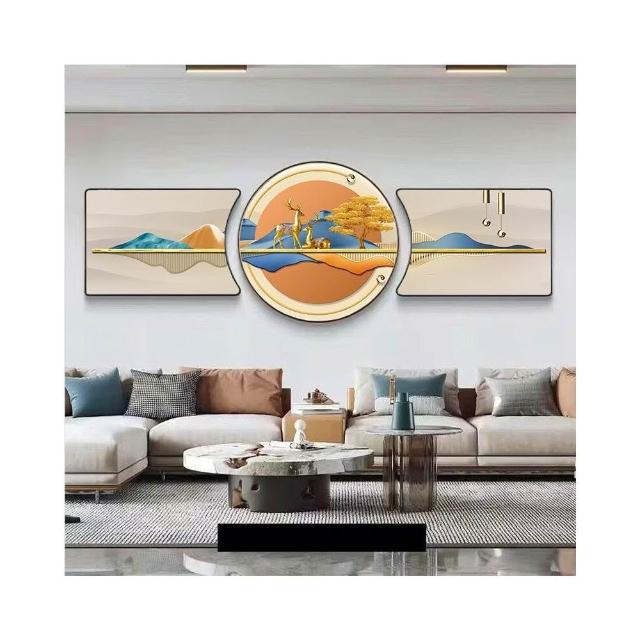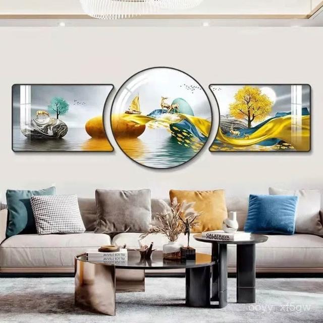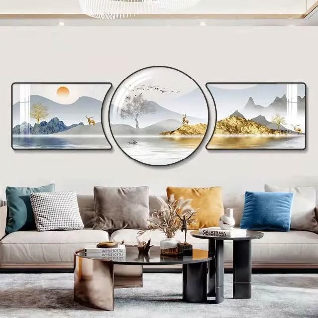 抽象三聯畵客廳裝飾畵新中式墻畵沙髮背景畵輕奢掛畵現代簡約壁畵 JAQU