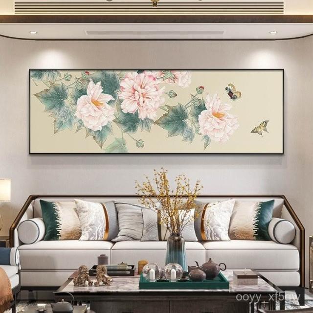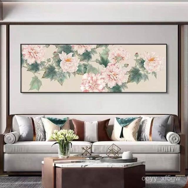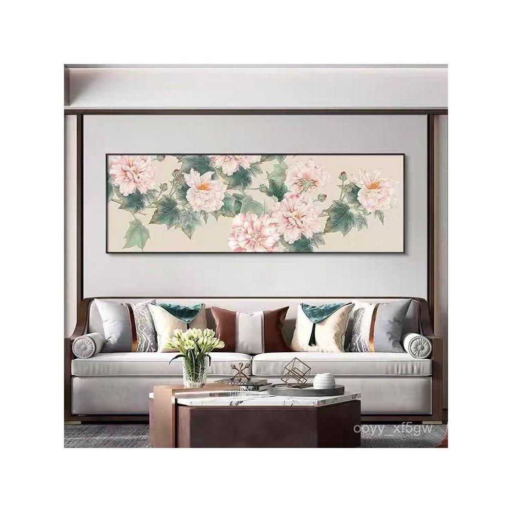 花開富貴牡丹圖新中式客廳沙髮背景墻 橫款裝飾畵 臥室掛畵 餐廳壁畵 背景牆裝飾 牡丹花掛畫 餐廳掛畫