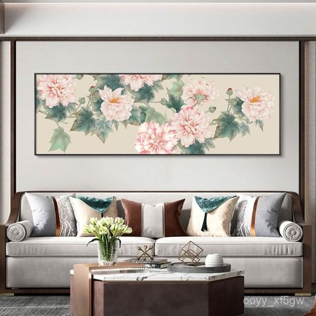 花開富貴牡丹圖新中式客廳沙髮背景墻 橫款裝飾畵 臥室掛畵 餐廳壁畵 背景牆裝飾 牡丹花掛畫 餐廳掛畫