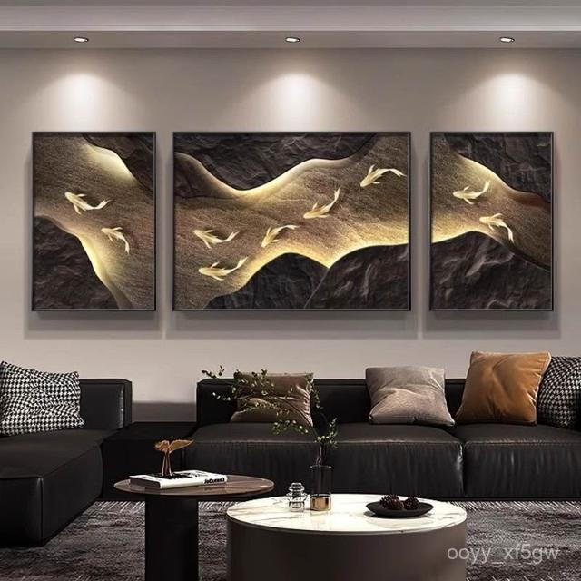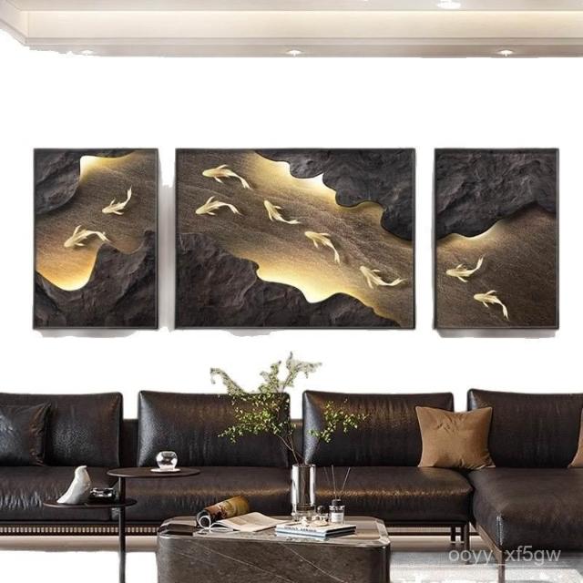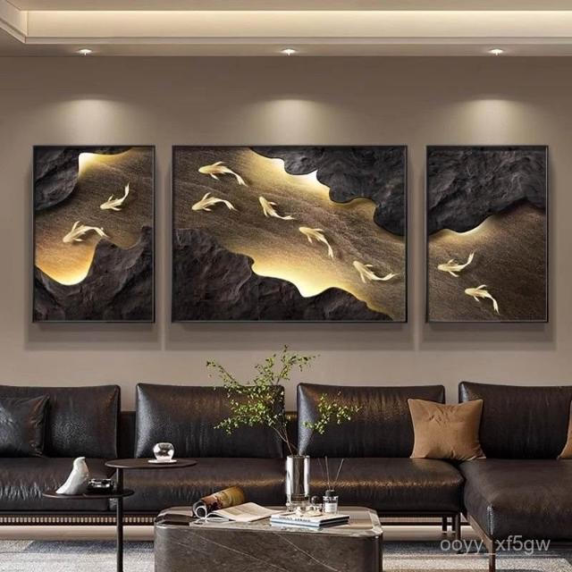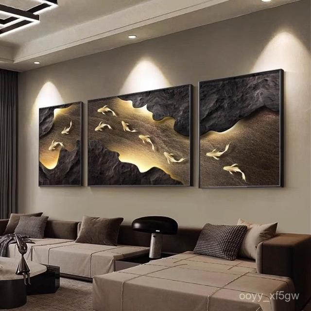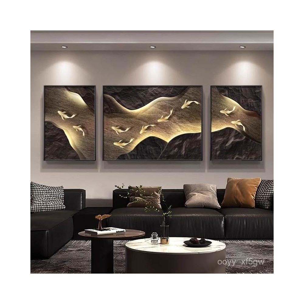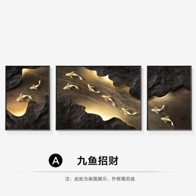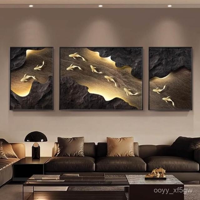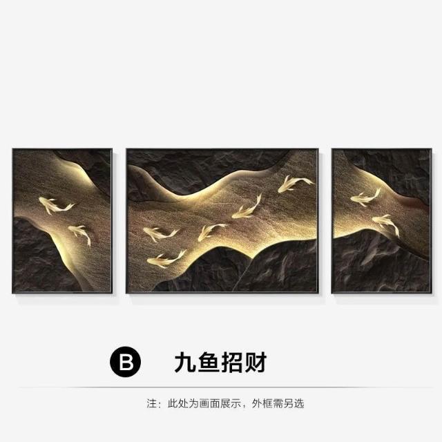 現代 輕奢 客廳裝飾畵 簡約大氣沙髮 背景墻 九魚壁畵 高級 三聯掛畵