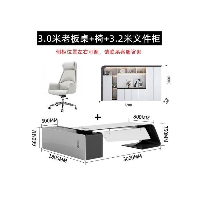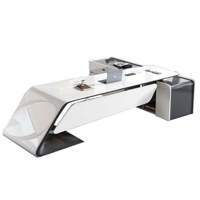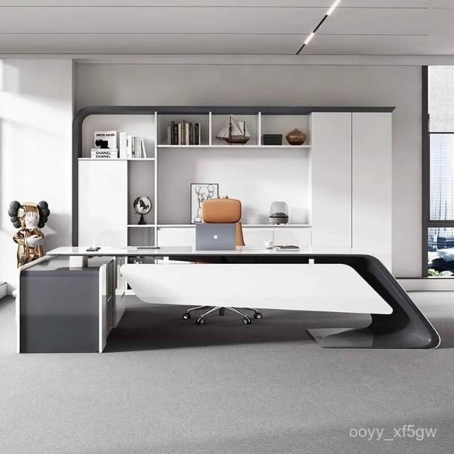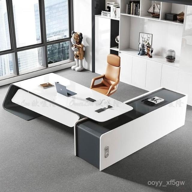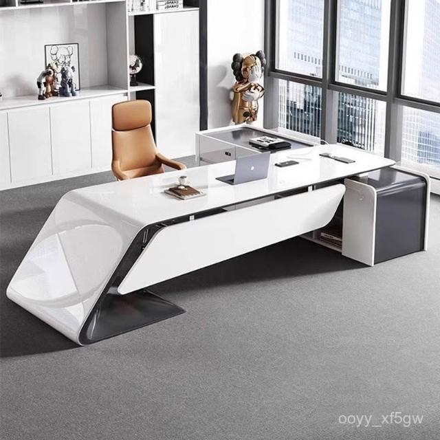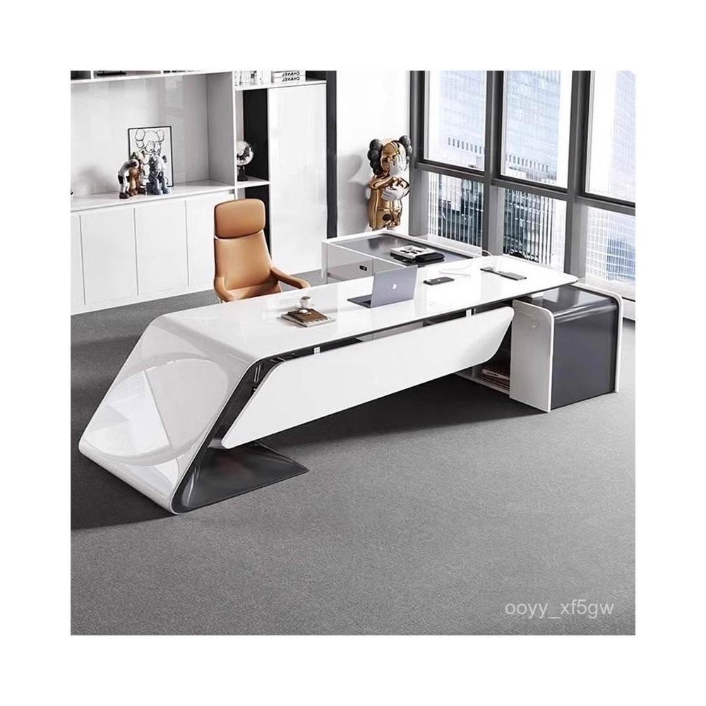 創意輕奢烤漆老闆辦公桌現代簡約大班臺主管桌經理桌總裁桌椅組閤 L5TR