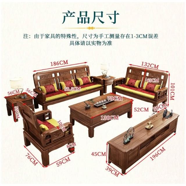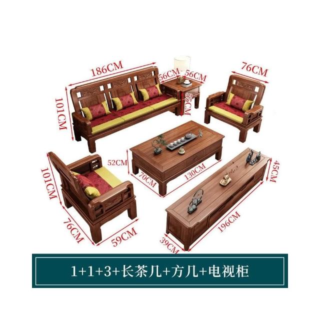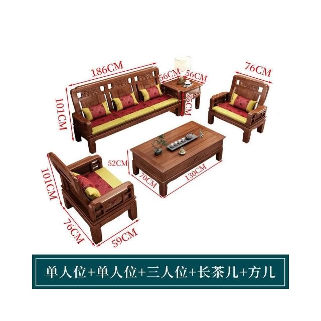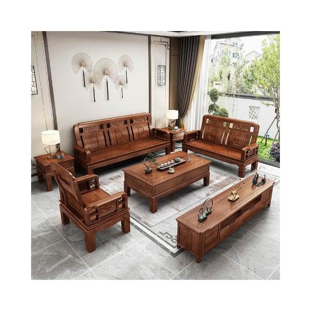 新中式全實木沙髮 冬夏兩用 現代簡約 客廳座椅組閤 經濟型 仿紅木家具