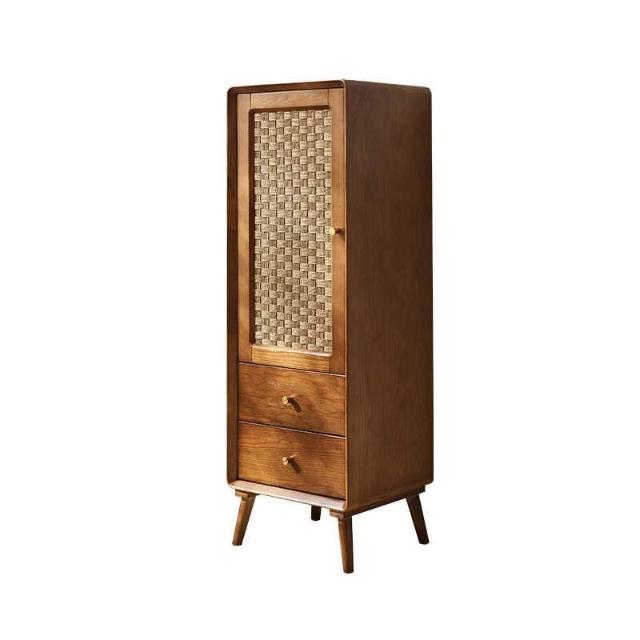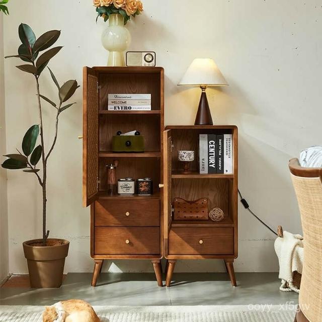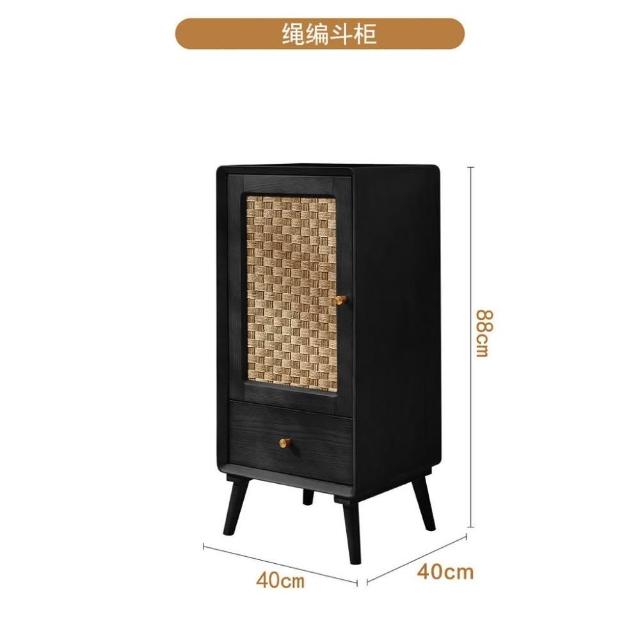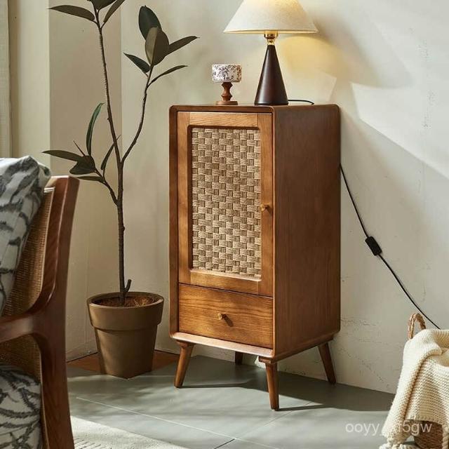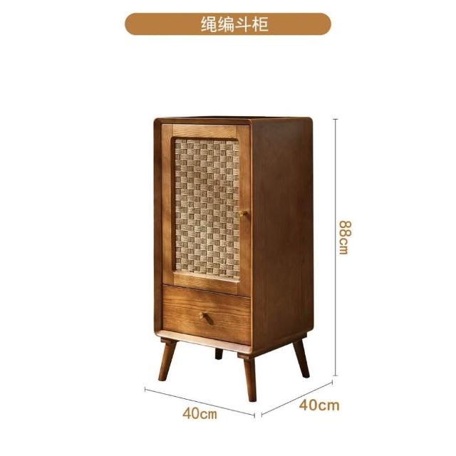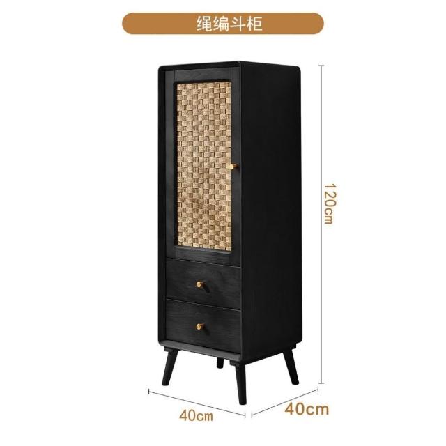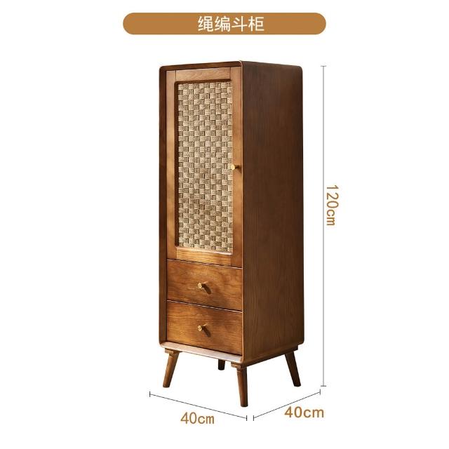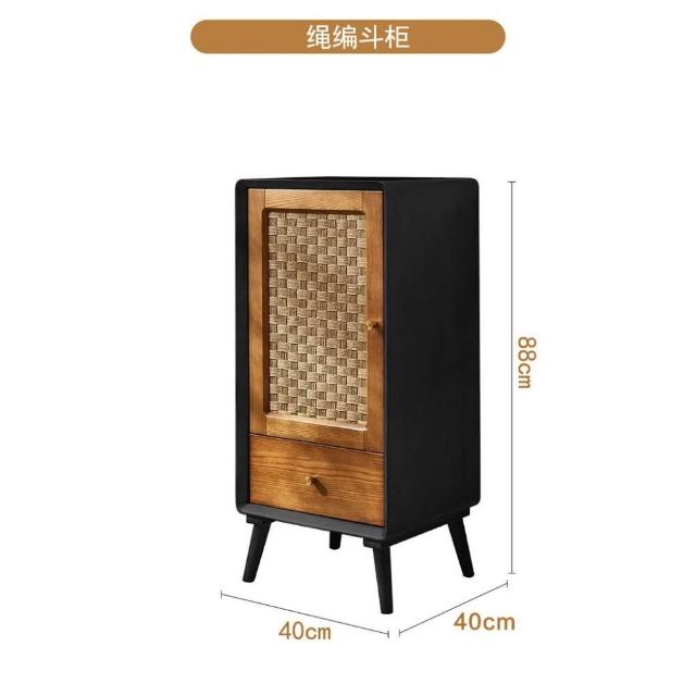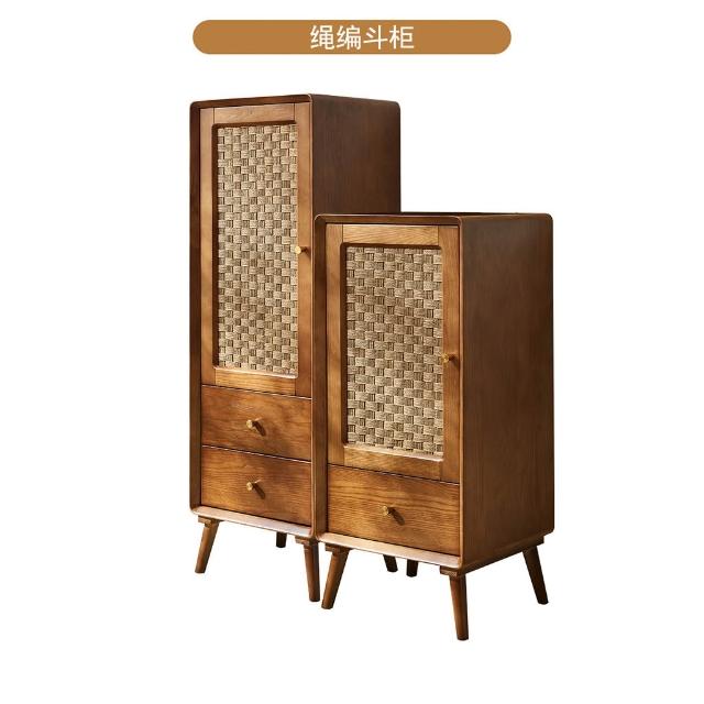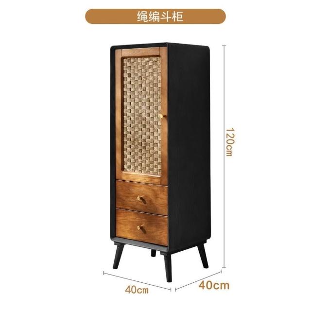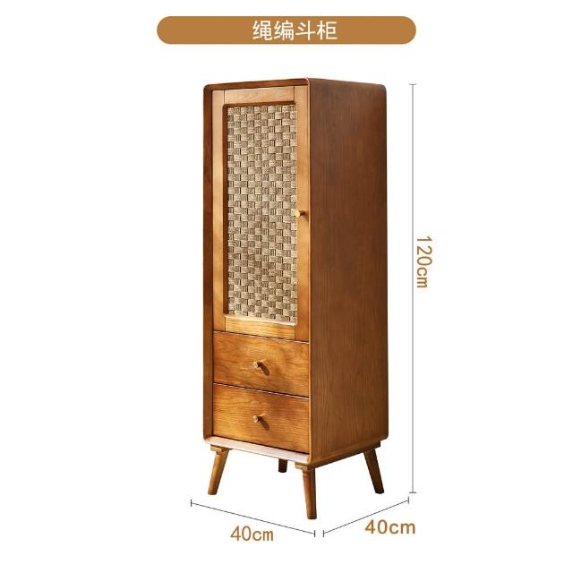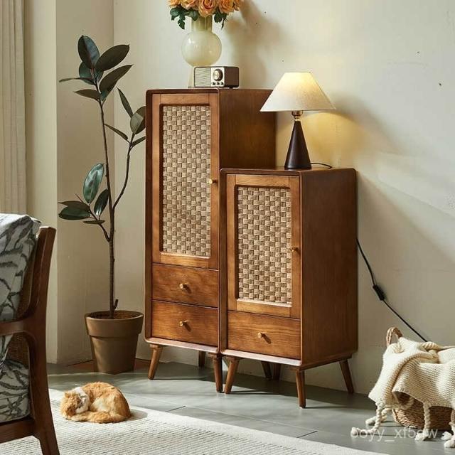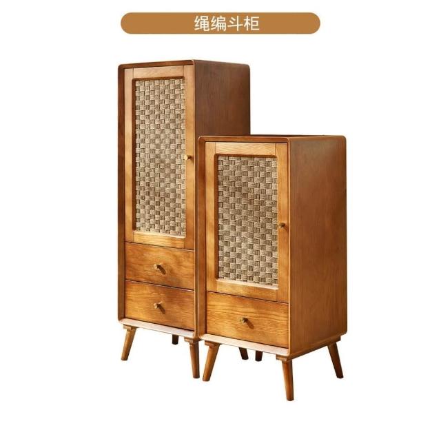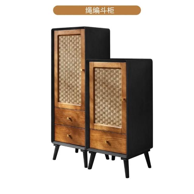 北歐實木鬥櫃 複古侘寂風 儲物櫃 臥室多功能 高低櫃 民宿藤編 收納櫃子