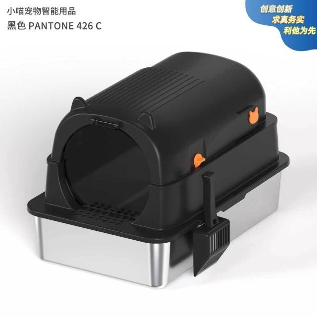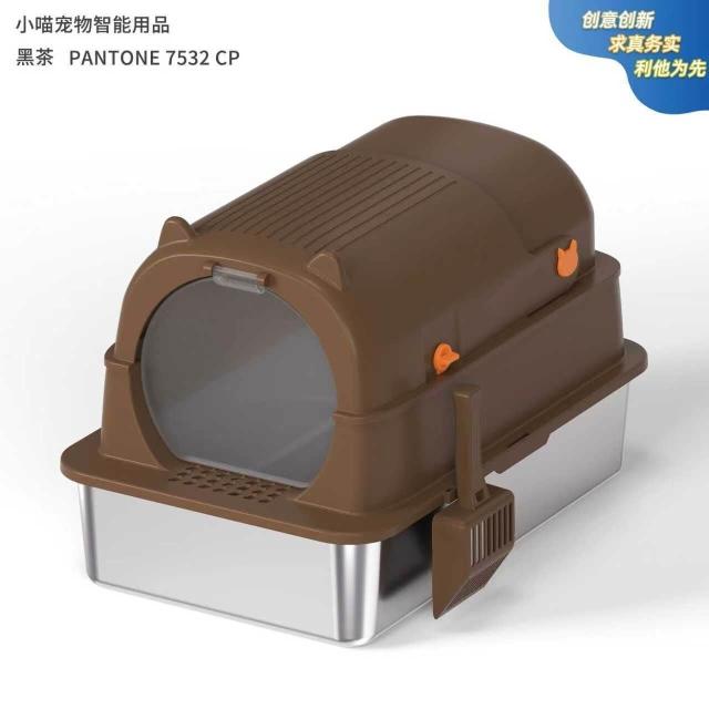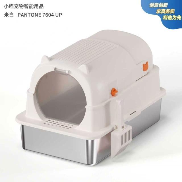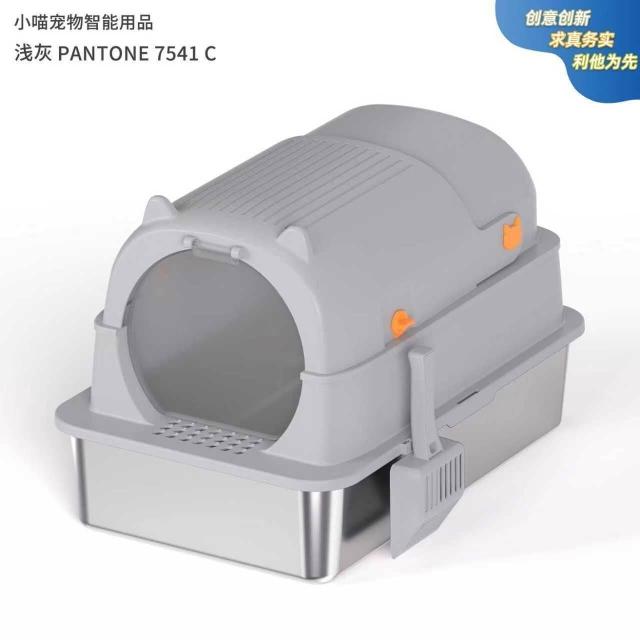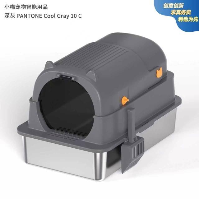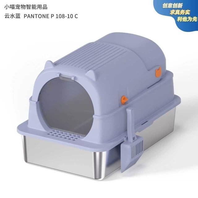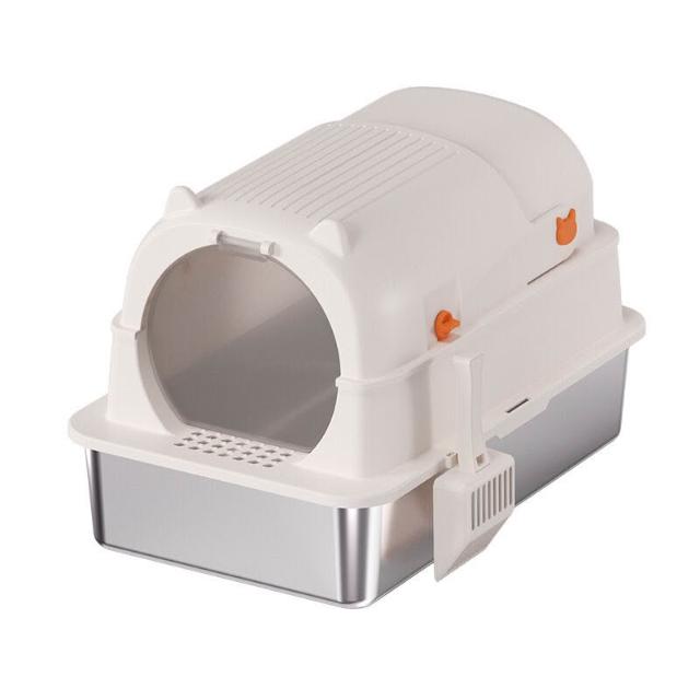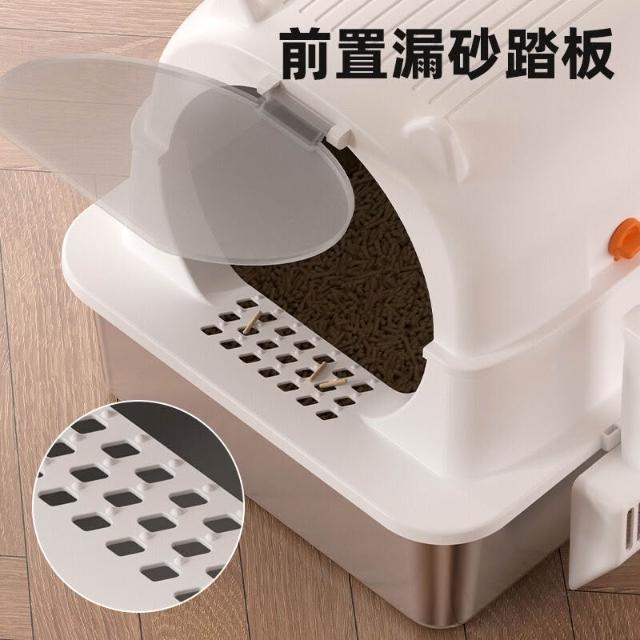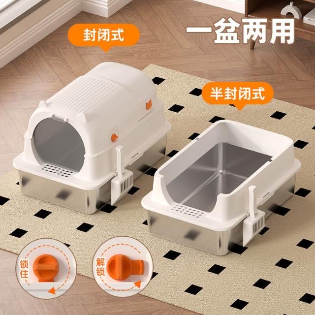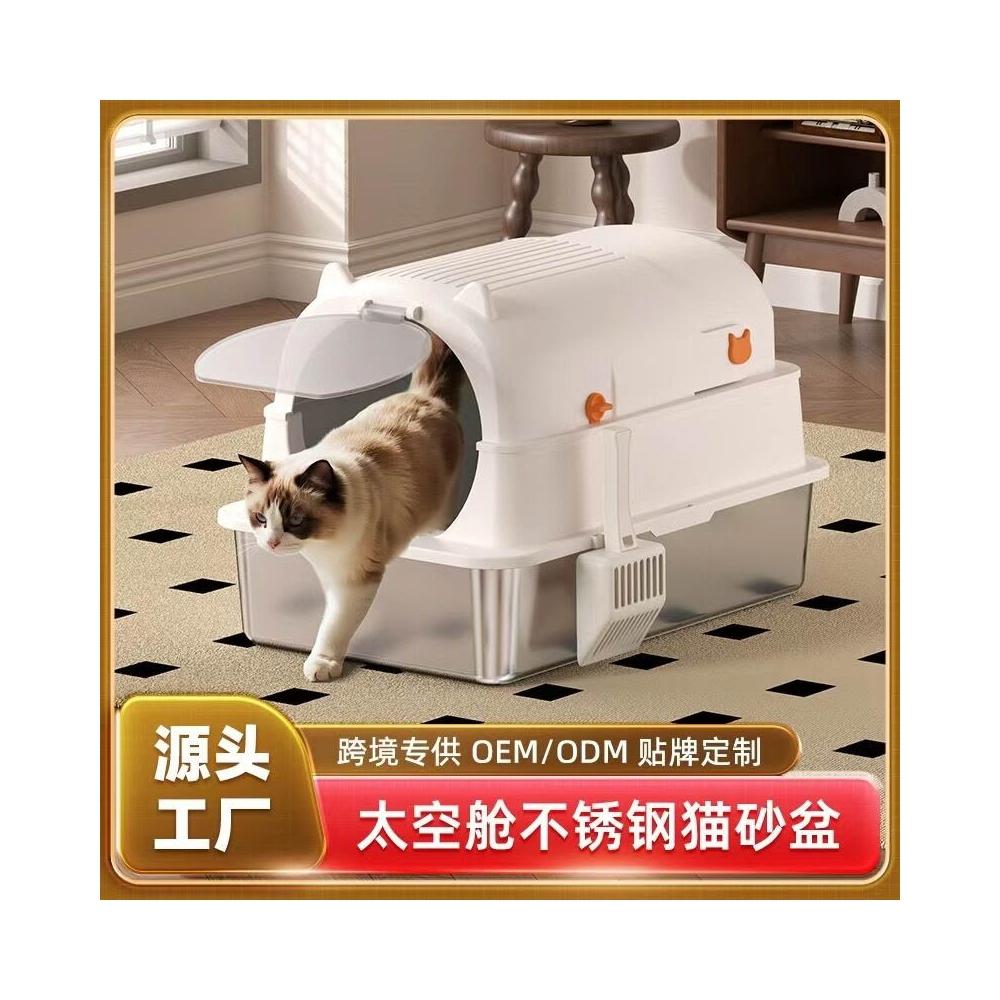 新品太空艙款貓砂盆超大號可拆卸半封閉防外濺易清洗不銹鋼貓砂盆 f8508b