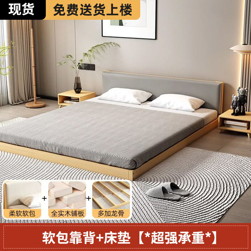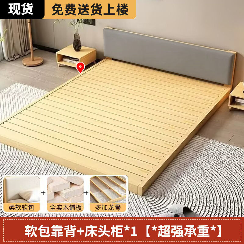 日式實木榻榻米床實木床落地無縫民宿雙人床加厚臥室塌塌米落地床 2ebf3fbb