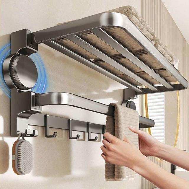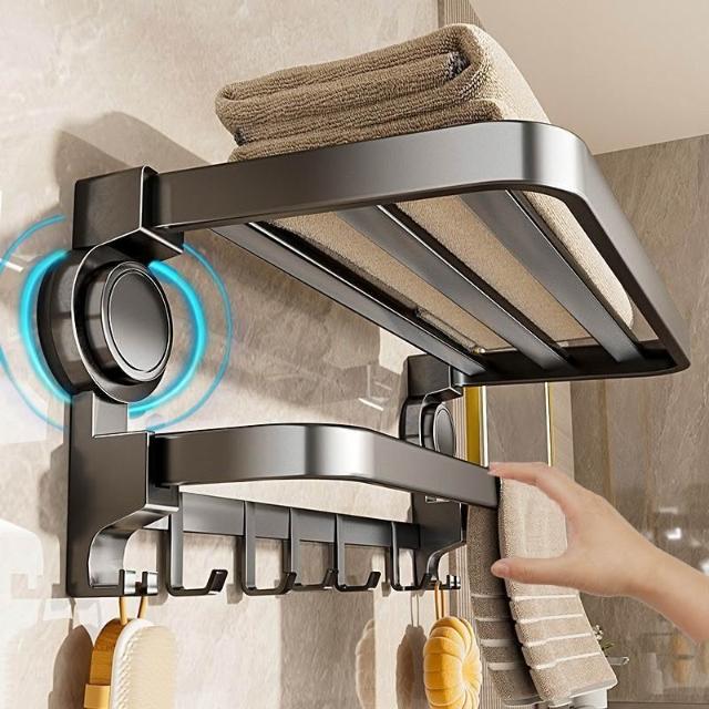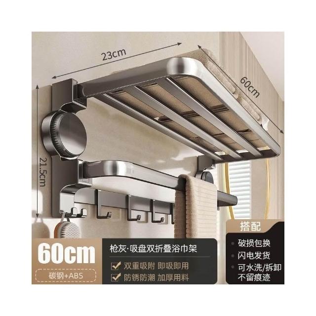 幕咖家具 槍灰 打孔毛巾架 浴巾 浴室置物架 衛生間 淋浴房 廁所毛巾一體 收納架子 mkk