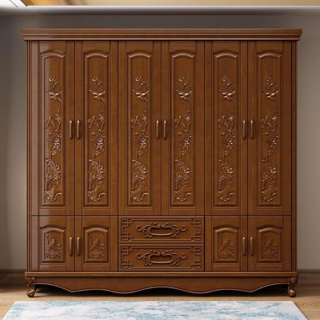 實木雕花衣櫃六門現代衣櫥簡約中式6門臥室小戶型大家用原木家具 mkk