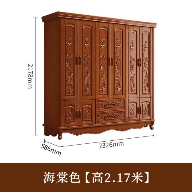 實木雕花衣櫃六門現代衣櫥簡約中式6門臥室小戶型大家用原木家具 mkk