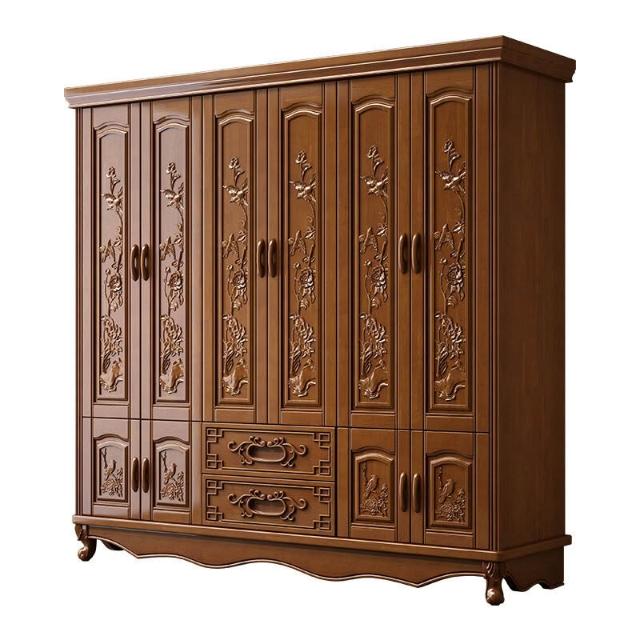 實木雕花衣櫃六門現代衣櫥簡約中式6門臥室小戶型大家用原木家具 mkk