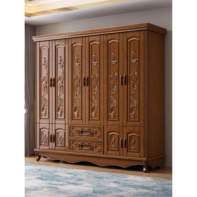 實木雕花衣櫃六門現代衣櫥簡約中式6門臥室小戶型大家用原木家具 mkk
