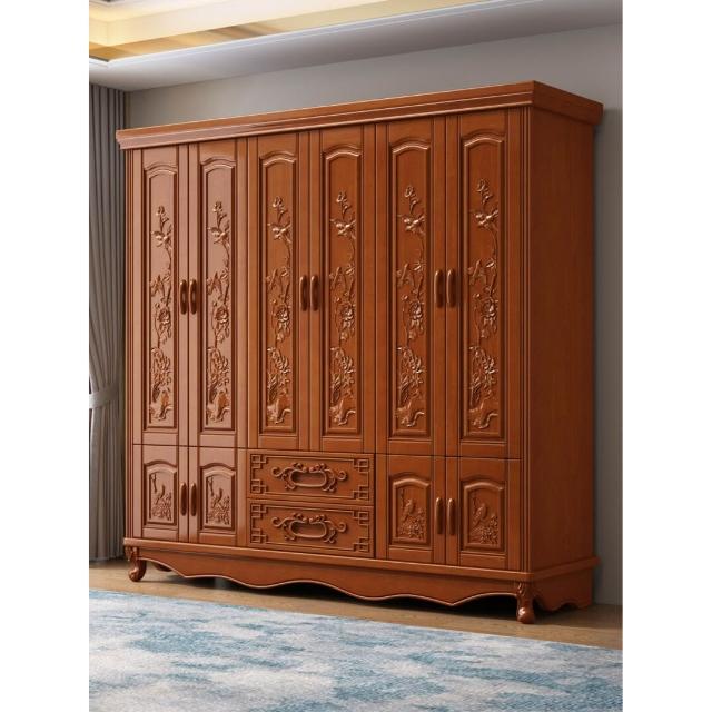 實木雕花衣櫃六門現代衣櫥簡約中式6門臥室小戶型大家用原木家具 mkk