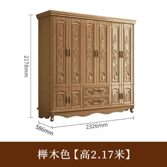 實木雕花衣櫃六門現代衣櫥簡約中式6門臥室小戶型大家用原木家具 mkk