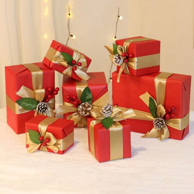 聖誕禮盒禮物盒禮品盒堆頭紅色聖誕樹空盒美陳布置擺件裝飾 mkk