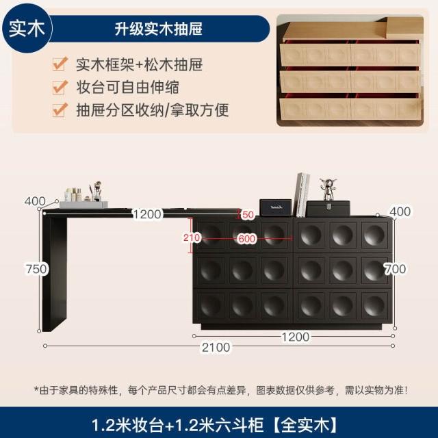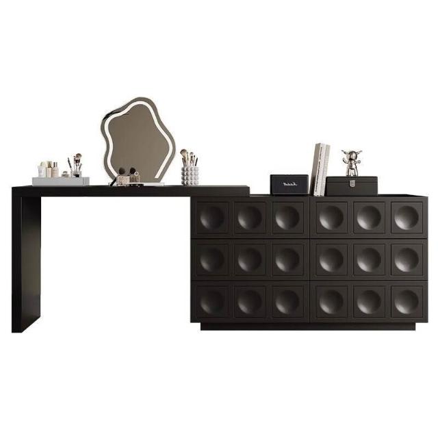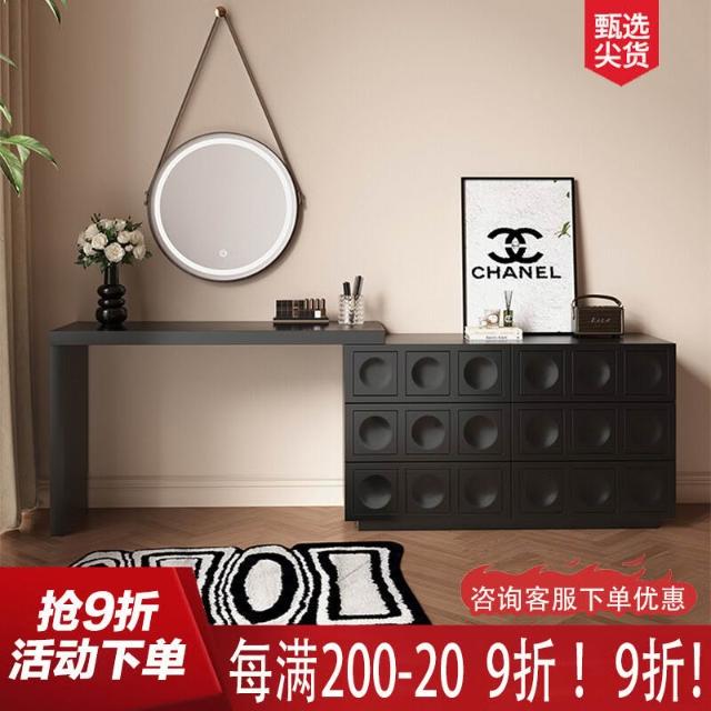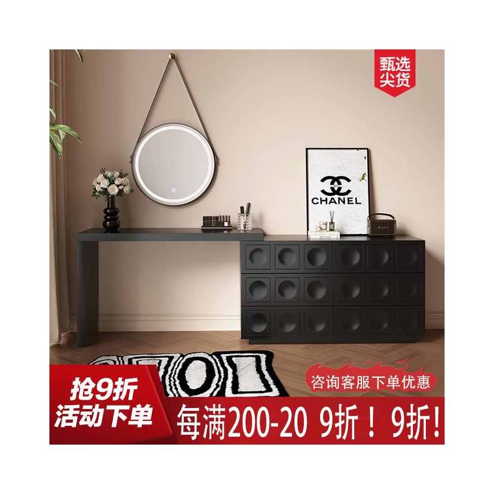 黑色梳妝臺鬥櫃一體轉角化妝桌子臥室床尾收納櫃實木妝臺書桌儲物 mkk