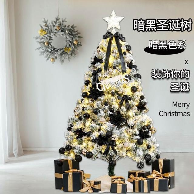 2025新款聖誕樹裝飾家用暗黑大型diy發光落雪高級感仿真樹北歐in mkk