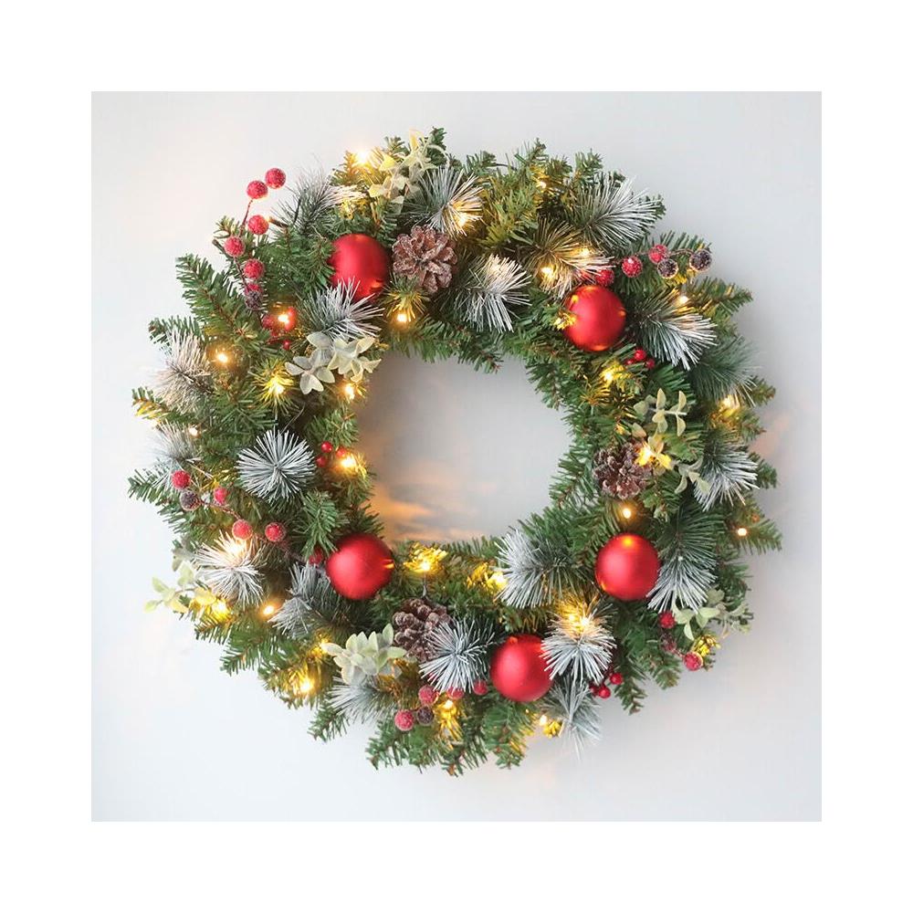幕咖家居 聖誕藤圈泡沫紅果PE葉裝飾花環天然松果聖誕門頭掛飾 mkk