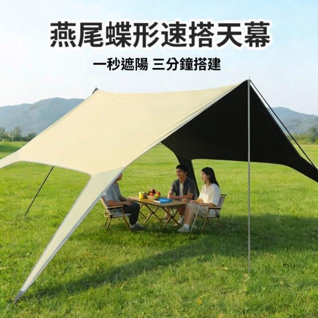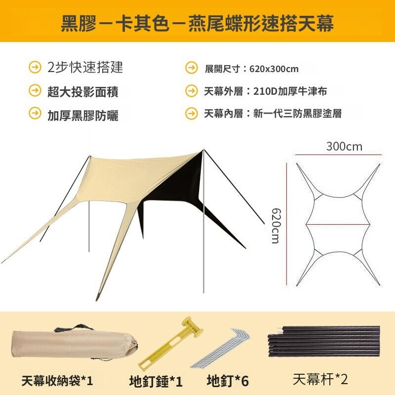 幕咖 戶外銀黑膠天幕帳篷 懶人燕尾蝶形天幕野營露營野炊防曬防雨便捷式 1c4