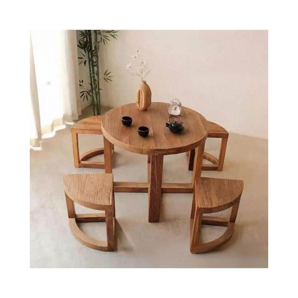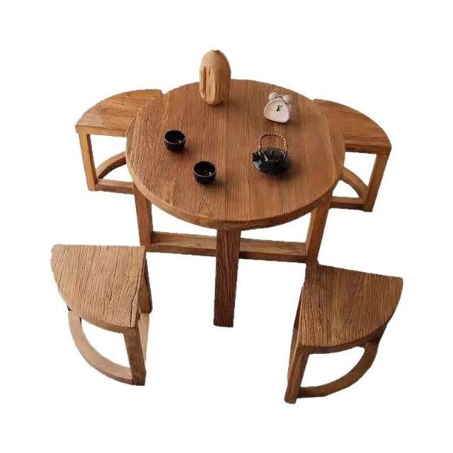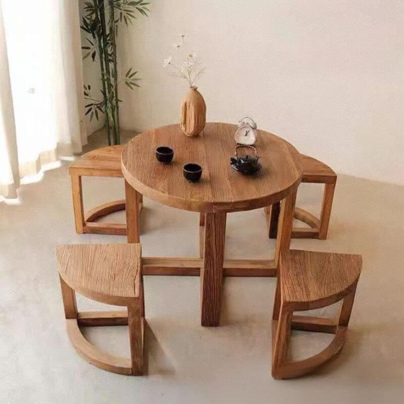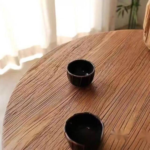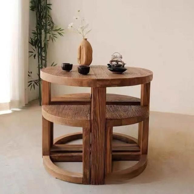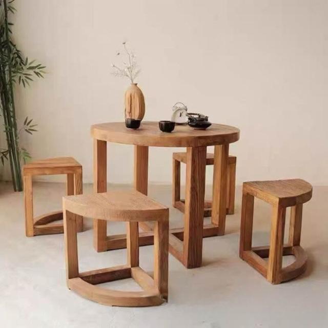 幕咖 老榆木餐桌 實木圓桌仿古喝茶桌 家用吃飯桌圓臺餐臺 中式餐桌 0e7