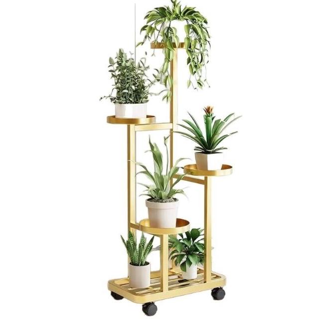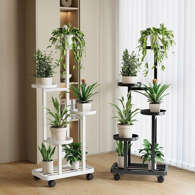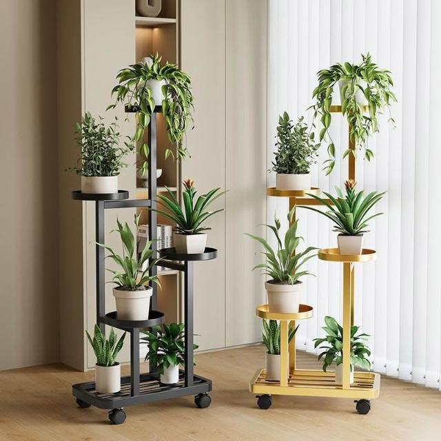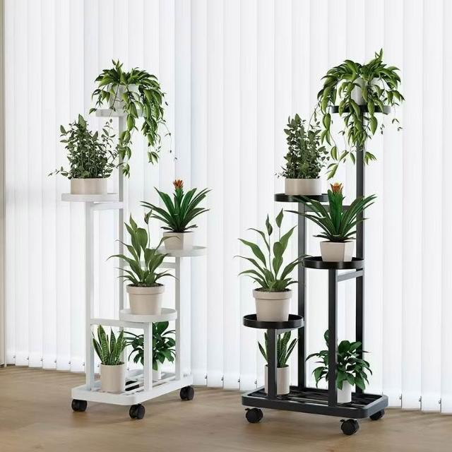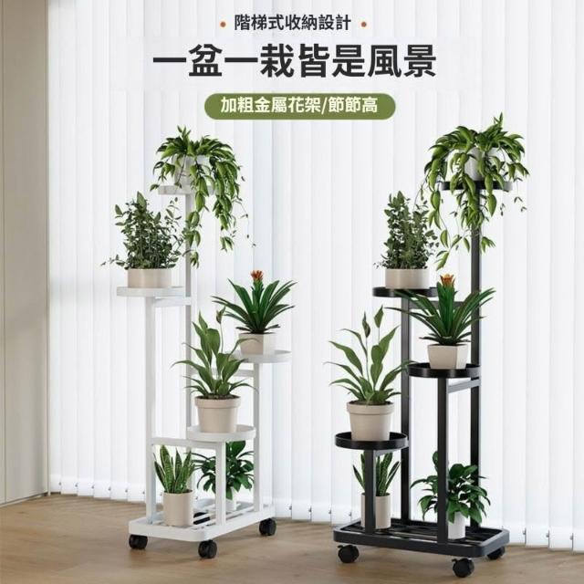 幕咖 新款鐵藝花架 落地陽臺客廳養花置物架 階梯步步高升帶輪移動花架 8ba